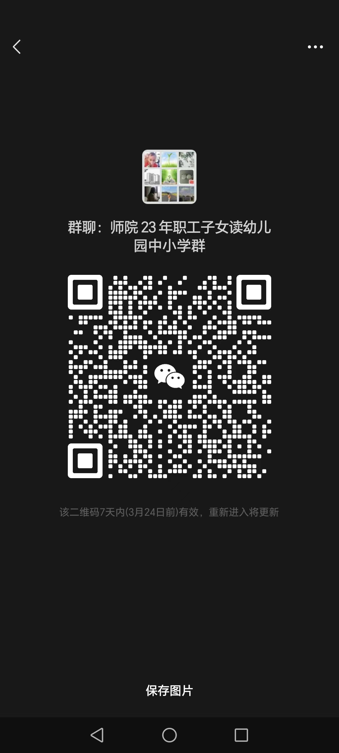 请属于子女符合填表范围的教职工于3月27日前将相应表格提交至周菊琼邮箱zjq@yxnu.edu.cn,并请尽快扫码加入微信群“师院23年职工子女读幼儿园中小学群”,后续就读事宜会在群里告知。孙子辈及编外职工子女请在相应表格的备注栏中注明。校工会具体负责入学相关事宜联系人:周菊琼。联系电话:680098、2054848(表格附后)。