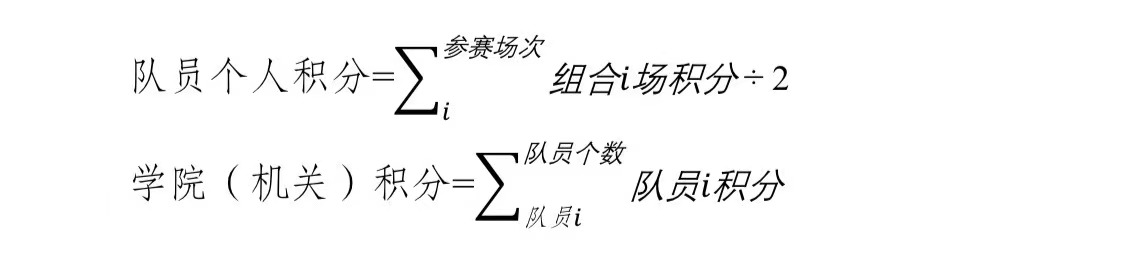 本公开赛鼓励同学院、同机关队组队参赛,每轮比赛过A的一方为胜方。同学院或同机关获胜组合积2分、跨学院或跨机关组合获胜积1.5分,负者积0分,积分多者名次列前。