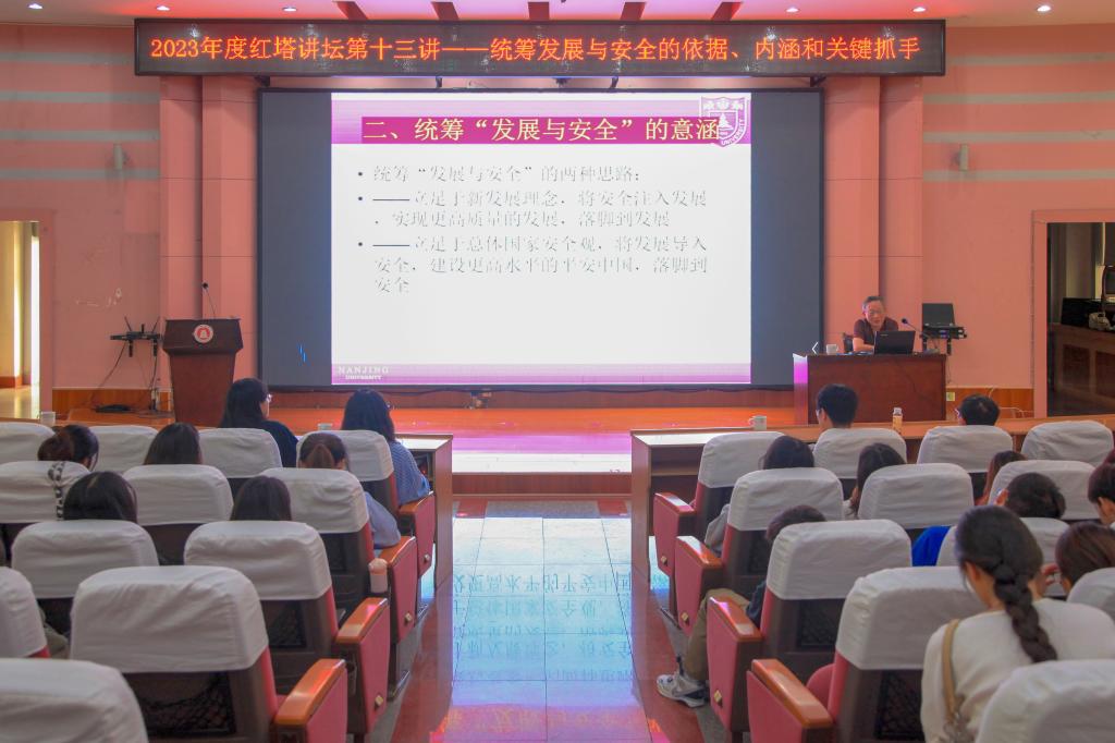 9月25日上午,南京大学政府管理学院教授童星应邀做客玉溪师范学院“红塔讲坛”,开展题为《统筹发展与安全的依据、内涵和关键抓手》的学术讲座。讲座由玉溪师范学院副校长李明主持,法学院、商学院师生近200人参加讲座。