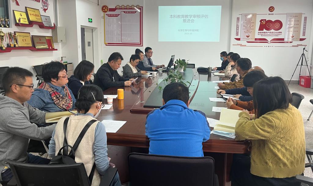 化学生物与环境学院坚持以习近平新时代中国特色社会主义思想为指导,全面贯彻落实党的教育方针,全面落实立德树人根本任务,牢固树立人才培养中心地位,以全面提高本科教育教学质量为核心,坚持“以评促建、以评促改、以评促管、以评促强”的方针,建立健全本科教育教学质量保障体系,积极构建自觉、自省、自律、自查、自纠的学院质量文化,促进学院内涵发展、特色发展、创新发展,培养德智体美劳全面发展的社会主义建设者和接班人。学院高度重视本科教育教学审核评估工作,及时制定《化学生物与环境学院本科教育教学审核评估工作方案》,成立评建工作领导小组,由学院党委书记、院长共同担任组长,下设评建工作办公室和主体报告组、状态数据组、支撑材料组、现场考察组、宣传工作组5个专项工作组。学院着力构建全员参与、全过程参与的审核评估工作体系,党政齐心、协同配合,充分发挥广大师生在“动员学习”“自评自建”“预评改进阶段”“专家评估阶段”和“整改落实”等整个评估阶段的主观能动性,做好各项工作。