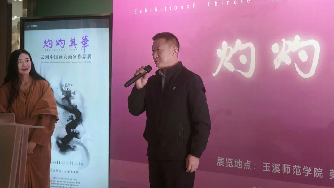 玉溪师范学院党委书记姜家雄宣布“灼灼其华”——云南中国画女画家作品展正式开展。开展仪式由玉溪师范学院美术学院禾子佳博士主持。