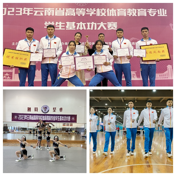 今年10月,云南省教育厅为进一步提高全省高校本科体育教育专业办学质量,促进专业综合改革与发展,展示体育教育专业学生的专业素质和精神风貌,决定于12月6日至9日在云南师范大学举办2023云南体育教育专业学生基本功大赛。接通知后,玉溪师范学院体育学院党政领导班子十分重视此次比赛,成立体育教育专业学生基本功大赛训练组,由赵兴武、冯艳琼负责总训练,班主任李雨霖负责日常管理与训练保障,陈镜妃、王绍芬、陈瑾榕、李俊恒、李唤春、初立伟等12名教师组成训练团队,经过近2个月刻苦训练,终获佳绩。在10门专业教育理论课程知识考试,队列队形、教学设计和片段教学三个方面的专业教学能力展示,田径、体操、武术、篮球、足球、排球6项专业运动技能竞赛中,都展现出了过硬的专业技术能力、扎实的教学基本功和良好的精神风貌,为学校赢得了荣誉。