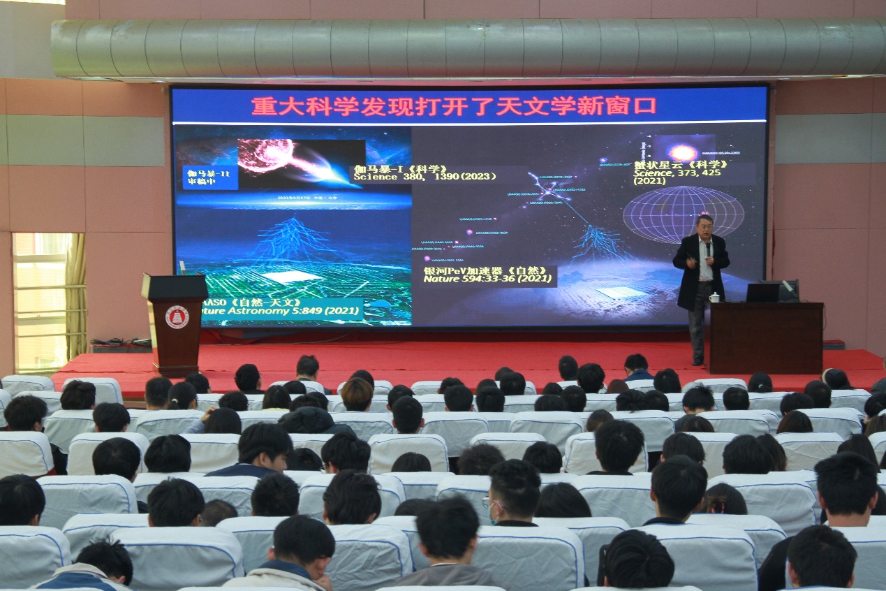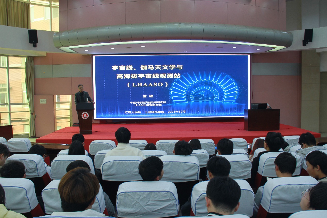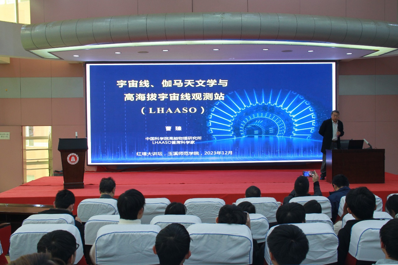 2023年12月29日,中国科学院院士、LHAASO首席科学家、中国科学院高能物理研究所曹臻研究员应邀做客玉溪师范学院红塔讲坛,在图书馆多元学术厅为师生作题为“宇宙线、伽马天文学与高海拔宇宙线观测站(LHAASO)”的学术报告。报告会由玉溪师范学院副校长李明主持,物理与电子工程学院师生400余人参加报告会。