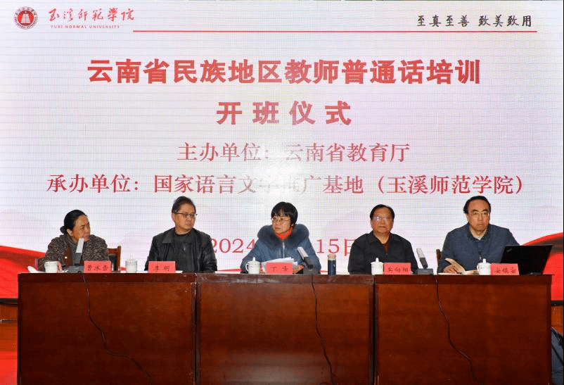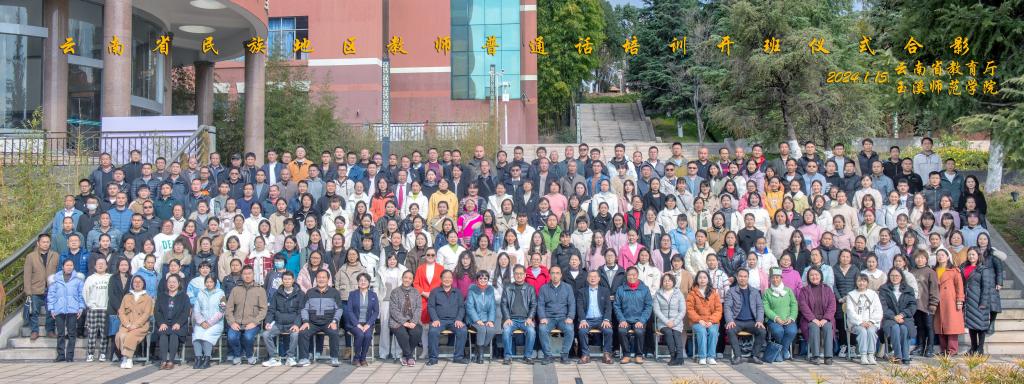 1月15日上午,云南省民族地区教师普通话培训开班仪式在玉溪师范学院顺利举行。云南省教育厅教材语管处二级调研员丁峰、玉溪师范学院副校长李明、玉溪市教体局语委办主任矣向阳,玉溪师范学院教务处处长、国家级语言文字推广基地副主任安镇宙,玉溪师范学院语委办主任、国家级语言文字推广基地副主任曹冰雪等出席开班仪式并致辞。