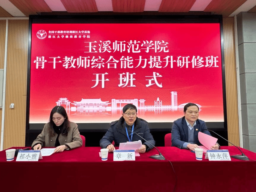 为适应新时代教师发展需求,提升教师队伍教育教学和科研研究能力,提高人才培养质量,1月15日至19日,玉溪师范学院组织63名骨干教师前往浙江大学进行为期5天的综合能力提升研修。副校长章新出席15日上午在浙江大学华家池校区举行的开班仪式并作动员讲话,对培训期间的纪律、学风等提出明确要求。
