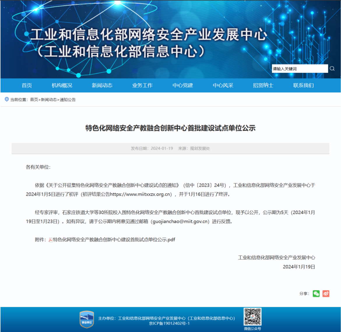 我校以“一流地方应用型人才培养”为目标,致力于培养符合地方产业发展需求、具有创新精神和实践能力的信息安全相关专业人才。入围工信部特色化网络安全产教融合创新中心,不仅是对我校信息安全相关专业教育教学的肯定,更是对我校在网络安全领域创新实践的认可。