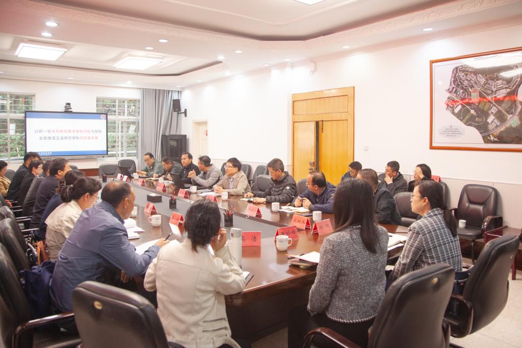 玉溪师范学院教务处处长安镇宙围绕新一轮本科教育教学审核评估工作顶层设计、动员部署、组织实施、细化落实、结果应用等作经验交流;双方对口部门负责人围绕本科教育教学审核评估相关指标内容及迎评促建重点工作任务作深入交流。