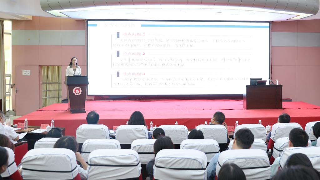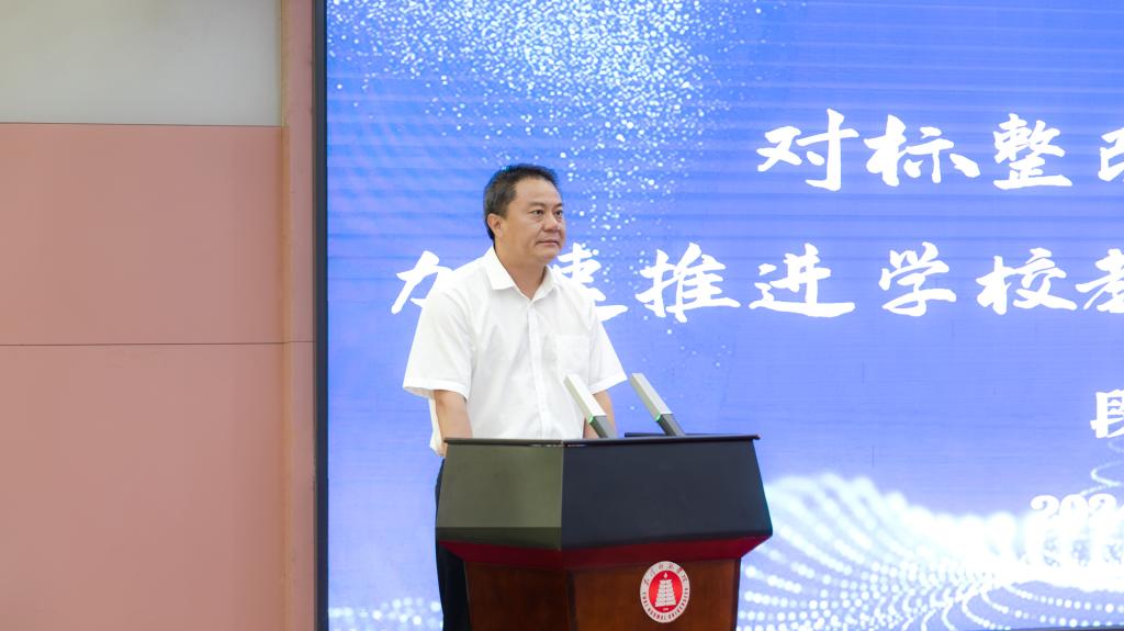 会上,校长段红云作本科教育教学审核评估整改工作动员。段红云指出,2024年是学校“整改提升年”,2025是学校“巩固发展年”,全校上下要充分认识到新一轮审核评估对学校高质量发展带来的深远影响,对标整改,以改促建,加速推进学校教育高质量发展。