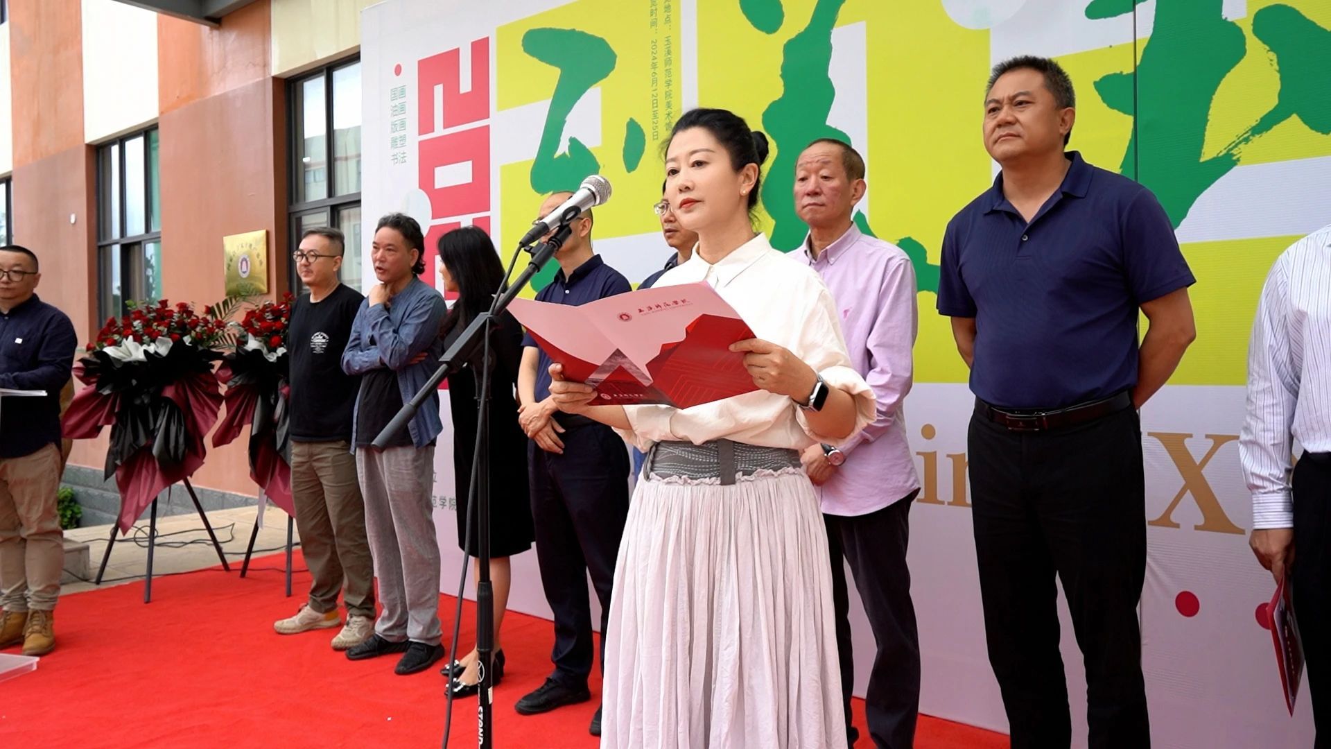 中国美术家协会连环画艺委会副主任、原云南艺术学院院长郭浩,云南艺术学院美术学院院长曹悦、云南艺术学院陇艺梅教授,玉溪市文学艺术界联合会主席罗盛勇,玉溪市聂耳文化中心副主任唐雅馨,玉溪市文化和旅游局副局长杨建兰,玉溪日报社副总编辑任红兵;玉溪师范学院校长段红云,副校长章新、杨伟,湄公河次区域民族民间文化传习馆馆长王飚等领导和嘉宾出席。美术学院全体师生参加开幕仪式,美术学院副院长林义淋教授主持。