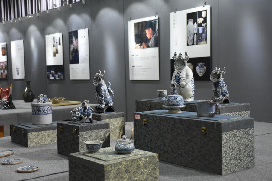 本次活动邀请到7位毕业于玉溪师范学院的陶瓷从业者携带产品到传习馆进行陶瓷艺术品的展出。其中,2007届毕业生古月窑品牌主理人胡文森、古月品陶轩工作室总经理胡文杰、沁心陶艺工坊总经理戴云明作为华宁陶代表,2005届毕业生瓦猫大人品牌主理人王子强、2015届毕业生汇溪窑文化传播有限公司总经理甘玉善作为玉溪青花代表,2006届毕业生云南工艺美术师豆进贵、2008届毕业生三三陶坊总经理吴兴平作为建水紫陶代表,展出作品均为创作者的代表作品。