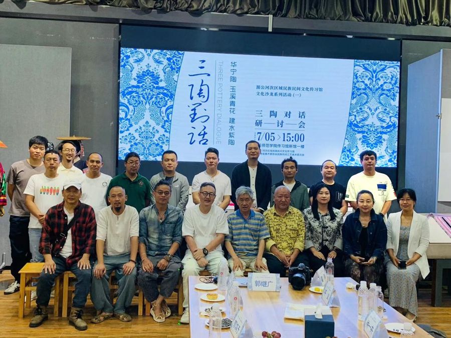 7月5日,“华宁陶、玉溪青花、建水紫陶”陶艺展览暨“三陶对话”研讨会在玉溪师范学院湄公河次区域民族民间文化传习馆(以下简称传习馆)举办。玉溪市文联主席罗盛勇,云南省美术家协会陶瓷艺委会主任刘也涵,玉溪市博物馆馆长王溪,红塔区文旅局副局长聂金明,玉溪市收藏家协会会长陈宝贵、副会长赵勇,玉溪师范学院科技处处长赵永胜,云南省美术家协会民族民间工艺美术委员会主任张汉东等来自云南省内的陶瓷专家、学者、从业者及爱好者等参加活动,活动由云南省美术家协会平面设计委员会主任、传习馆馆长王飚主持。