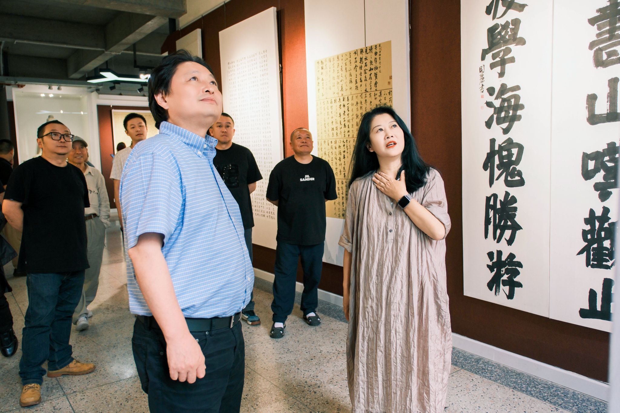 美术学院博物馆式的教学空间,受到林茂院长等人的高度赞赏。他表示,无论是一楼的四大石窟造像、壁画仿品,还是二楼的古建模型,或四楼的青花瓷展览中心,都令人有身临其境之感;这些艺术瑰宝,不仅传递出沉淀千年的中华文化底蕴,更为美术学院师生的艺术创作提供了灵感。