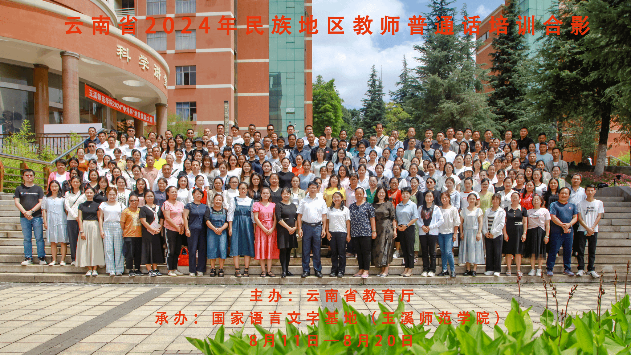 国务院办公厅印发的《关于全面加强新时代语言文字工作的意见》中强调,要大力提高教师国家通用语言文字核心素养,加强民族地区教师国家通用语言文字教育教学能力培训,提高教师国家通用语言文字应用能力。为贯彻落实教育部、国家语委对教师普通话的等级要求,8月11日至20日,由云南省教育厅主办,国家语言文字推广基地(玉溪师范学院)承办的2024年民族地区教师普通话培训在玉溪师范学院顺利举行。