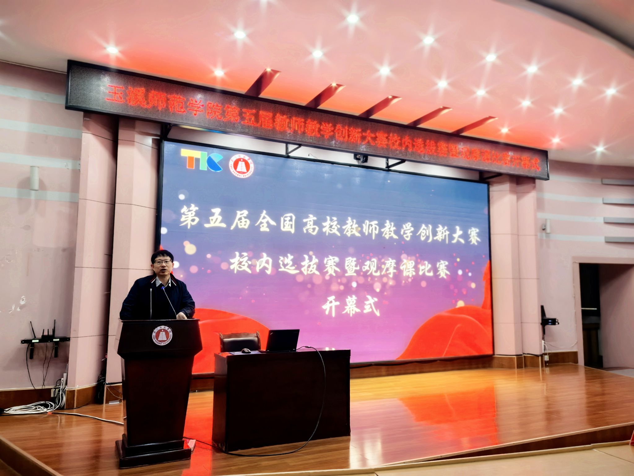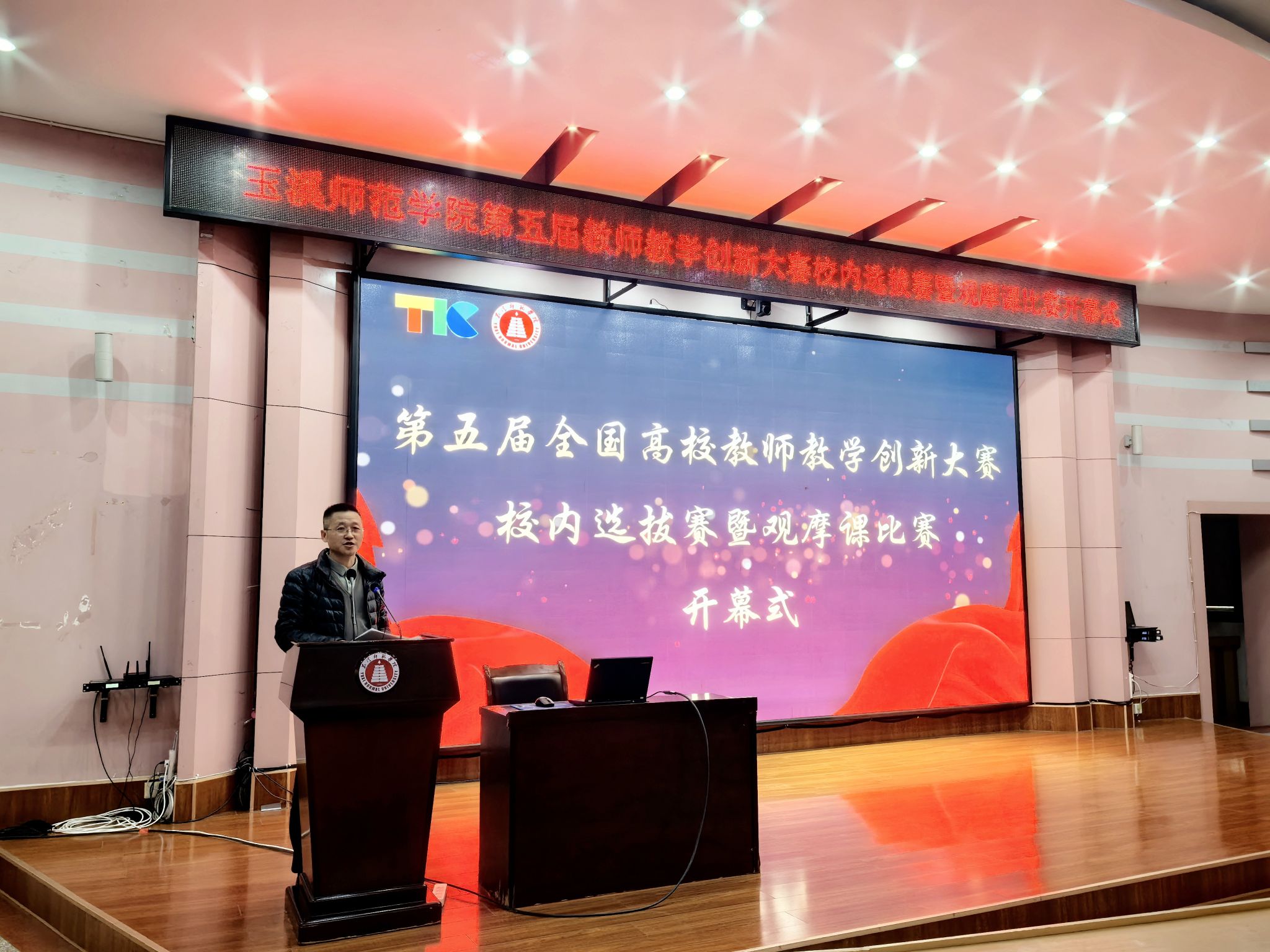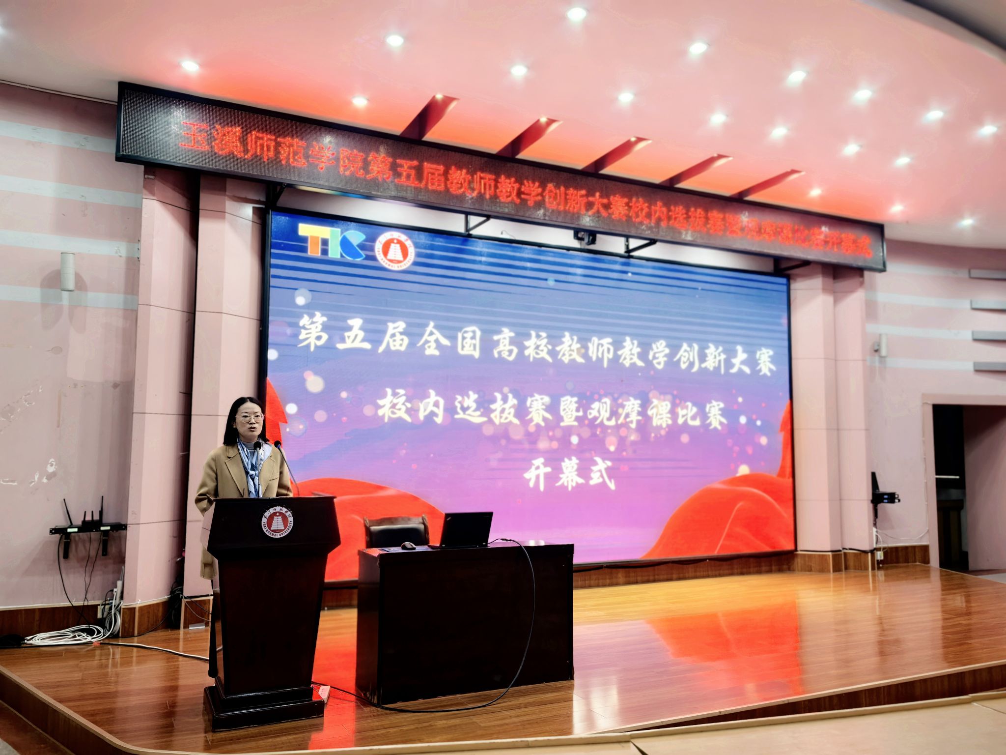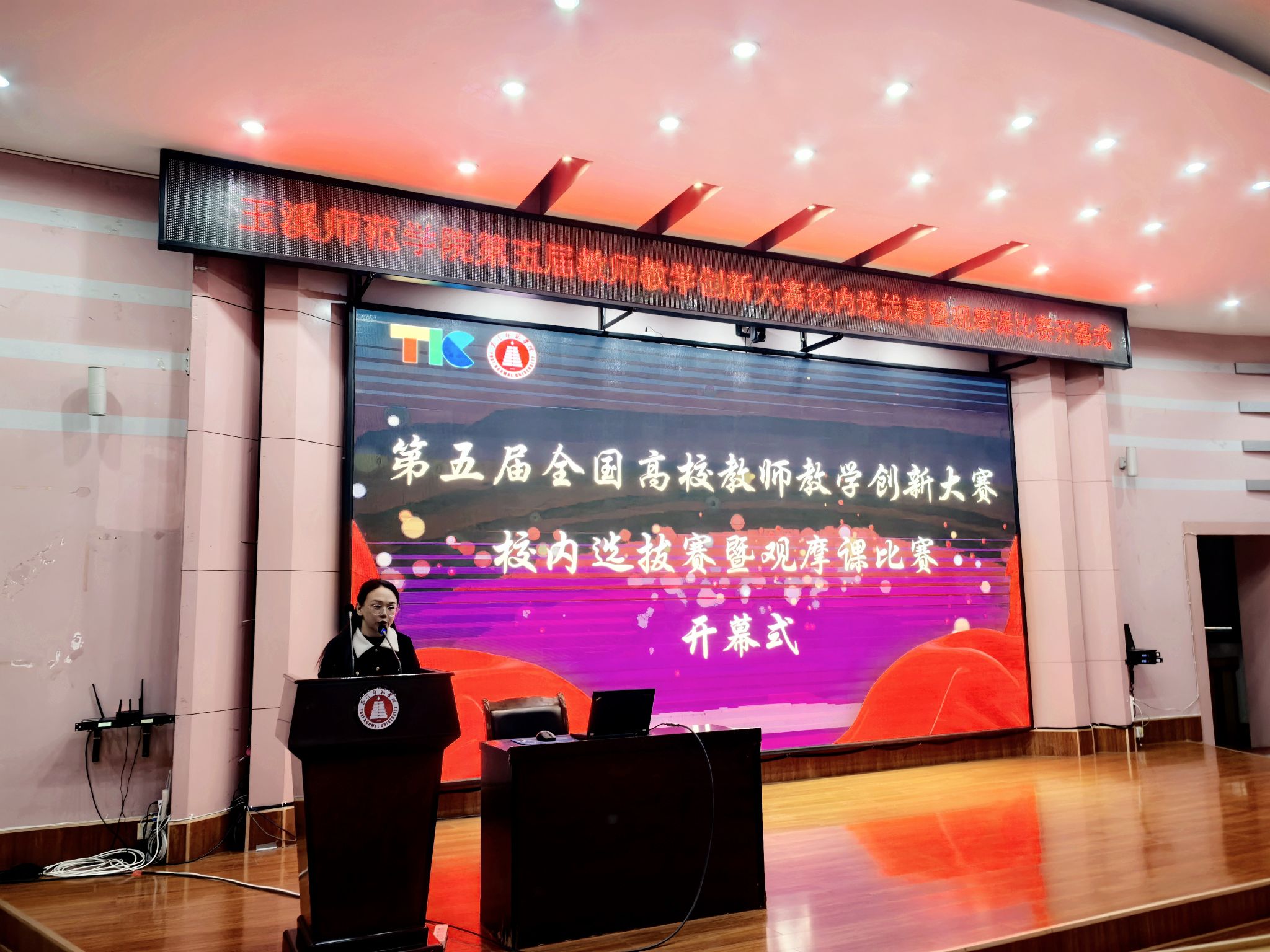 10月11日上午,第五届全国高校教师教学创新大赛玉溪师范学院校内选拔赛暨观摩课比赛开幕式在学校科学讲堂举行。副校长章新出席并致辞,组委会、评委、参赛选手及工作人员参加开幕式。教学质量监控中心主任师洪主持。