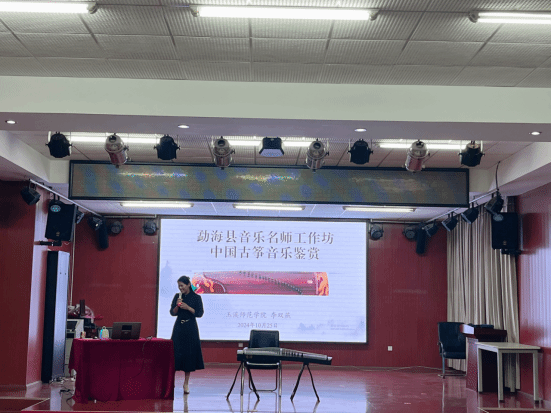 10月25日晚8时,由西双版纳州勐海县教育体育局音乐名师工作坊主办的“中国古筝音乐鉴赏与师资培训”活动在勐海县青少年宫举行。活动特邀玉溪师范学院音乐学院教师李双燕主讲,勐海县中小学音乐教师们参加培训活动。