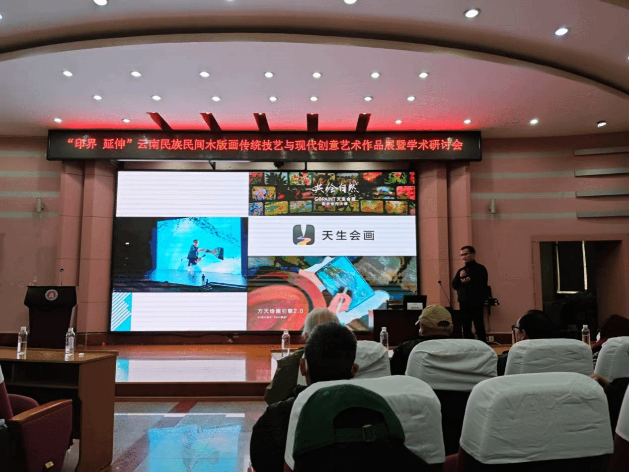 当天下午,在传习馆举办了专题学术研讨会,国内著名版画家、设计家、学者、艺术家围绕“印界·延伸”云南木版画传统技艺与现代创意艺术的创新这一主题,探讨版画艺术与数字艺术,AI的结合呈现出的新的艺术样貌等学术界关心的热点话题。同时,由来自版画、设计、民间等领域的专家进行创作分享,特别是平面设计作品入选第十四届全国美展的云南作者代表分享了创作经验,作品中云南民间绘画内容与形式特征融入现代设计的创新创意,是本土化与现代化融合的重要思考与探索。研讨会气氛热烈,学术研讨取得丰硕成果。