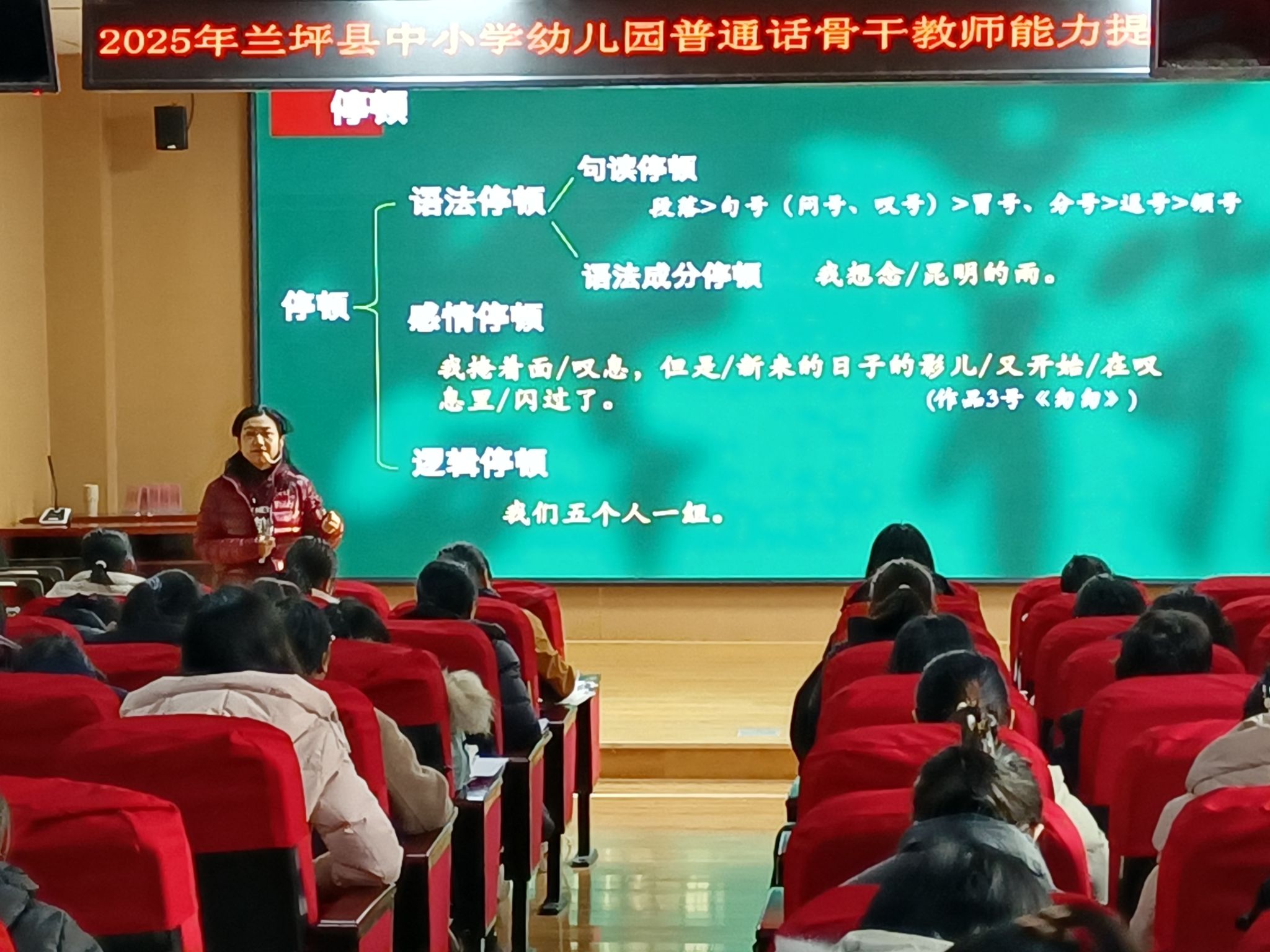 此次培训由国家级普通话测试员曹冰雪带队,金国东、李潇潇、杨娜等教师同行。在兰坪县,团队为100余名各民族中小学和幼儿园骨干教师开展普通话提升培训。培训课涵盖语音基础、单字词语、朗读正音、话题训练等内容,致力于参训教师普通话水平的提升。