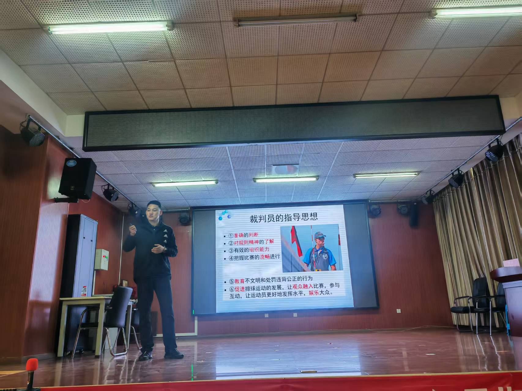 为认真贯彻云南省学校体育美育浸润行动计划,打造玉溪师范学院体育学院体育浸润行动计划品牌,2月21日至23日,玉溪师范学院体育学院选派教师赴勐海县业余少体校举办勐海县校园排球裁判员、教练员培训班。培训班旨在提升勐海县校园排球教练员、裁判员的专业素质、教学与执裁能力,进而推动勐海县校园排球发展,提高勐海县青少年校园排球水平。本次培训班由勐海县教育体育局主办,玉溪师范学院体育学院副教授初立伟老师进行授课,全县各中小学体育教师100余人参加培训。
