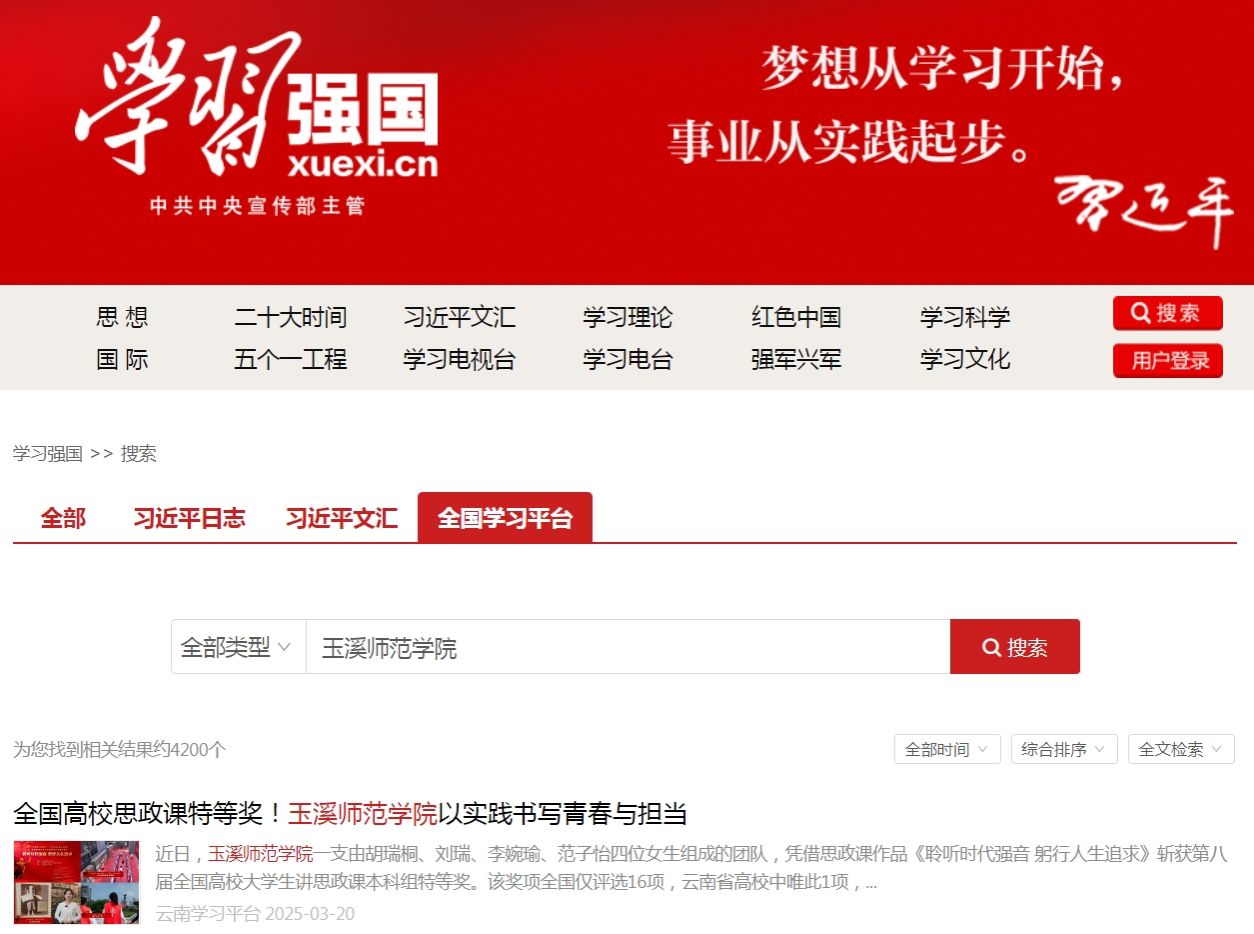 近日,玉溪师范学院一支由胡瑞桐、刘瑞、李婉瑜、范子怡四位女生组成的团队,凭借思政课作品《聆听时代强音 躬行人生追求》斩获第八届全国高校大学生讲思政课本科组特等奖。该奖项全国仅评选16项,云南省高校中唯此1项,展现了玉溪师范学院学子在思政教育领域的卓越实力。
