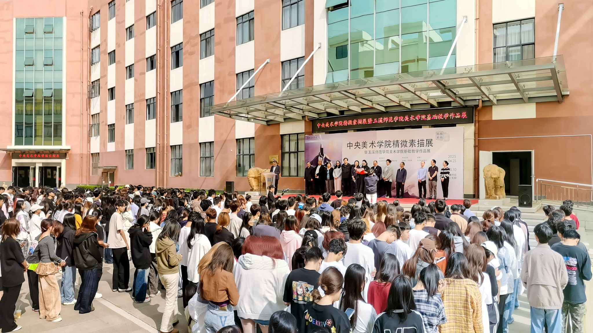 玉溪师范学院美术学院院长赵芳在致辞中表示,本次展览分为“精微素描”与“基础教学”两大板块,涵盖中央美院历届学生作品及玉溪师范学院2021至2024级学生习作;展览不仅是对教学成果的集中检阅,更是院校深度合作的崭新起点。她表示,现场展出的百余幅作品中,央美学子以精微笔触呈现现代生活的哲思,玉溪学子则以乡土风物传递深情,形成“跨越山海的对话”。