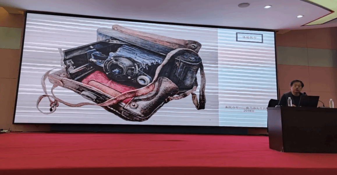 讲座伊始,苏海江教授开宗明义,阐释精微素描课程以“情本体论”为核心,引导学生从平凡物件中挖掘深层意义。随后,深入解析了精微素描的教学逻辑,提到课程通过“家”“平凡生活”等五大主题,引导学生从家庭关系、社会观察中提炼创作素材,培养共情能力与人文关怀。苏海江教授强调,精微素描不仅是观察与技法的训练,更是修心的过程,如学生在描绘父亲的一双手套、一个钱包时,重新理解了亲情与责任。他以《与我同岁》《中年坚持的意义》等作品为例,展示了学生如何通过微观叙事传递时代气象,在观察与创作中重新思考个人与家庭、社会的关系,而这正是艺术教育培根铸魂的意义所在。