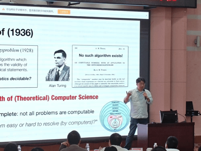 尹一通教授围绕“计算采样的理论基础”展开报告,系统阐释了蒙特卡洛方法在高效计算中的核心地位及其演化历程。尹教授特别介绍了硬核模型及其在分布式计算中的动态优化,为处理复杂系统(如社交网络、物理相变模拟)提供了理论支撑。