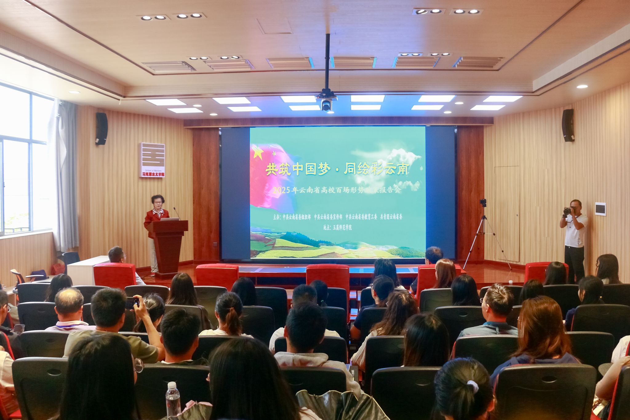 5月23日下午,玉溪师范学院在马克思主义学院四耳报告厅举行2025年“共筑中国梦·同绘彩云南”形势政策报告会,中国科学院云南天文台研究员栗志受邀作专题报告。学校相关部门领导、数理学院师生,义务教育青年教师物理学科培训班全体学员参加报告会。报告会由数理学院院长李周红主持。