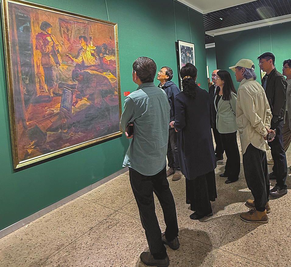 展览现场,侯一民油画作品《地下工作者》引来观众品评、欣赏。