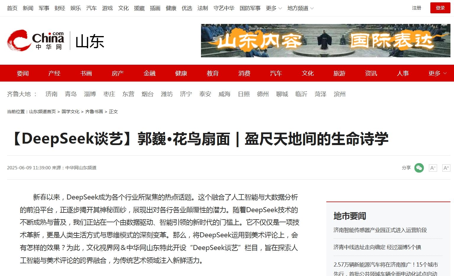 新春以来,DeepSeek成为各个行业所聚焦的热点话题。这个融合了人工智能与大数据分析的前沿平台,正逐步揭开其神秘面纱,展现出对各行各业颠覆性的潜力。随着DeepSeek技术的不断成熟与普及,我们正站在一个由数据驱动、智能引领的新时代的门槛上。它不仅仅是一项技术革新,更是人类生活方式与思维模式的深刻变革。那么,将DeepSeek运用到美术评论上,会有怎样的效果?为此,文化视界网&中华网山东特此开设“DeepSeek谈艺”栏目,旨在探索人工智能与美术评论的跨界融合,为传统艺术领域注入新鲜活力。