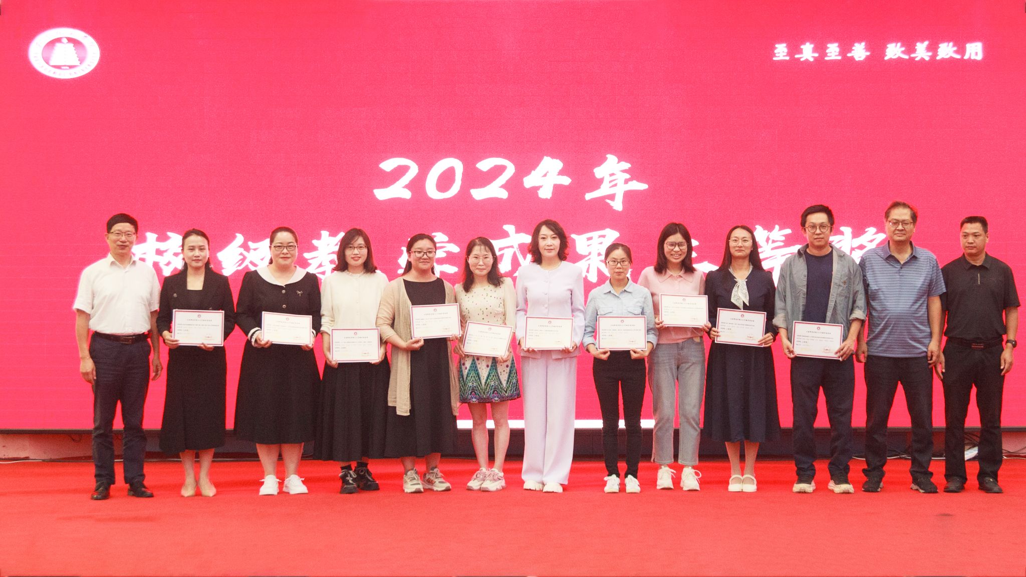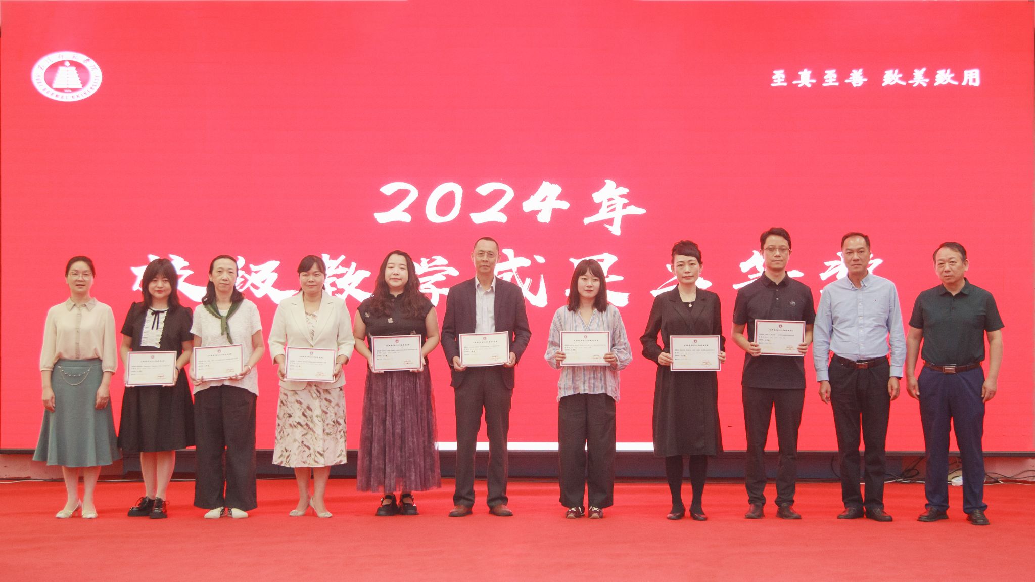 为激励广大教师潜心教学、追求卓越,营造重视教学、崇尚创新的浓厚氛围,会议表彰了2024年在教育教学改革与实践中取得突出成效的优秀教师和团队,充分肯定了他们在推动学校教育教学改革、提升人才培养质量方面所做的积极贡献。出席会议的校领导为获奖代表颁发证书。