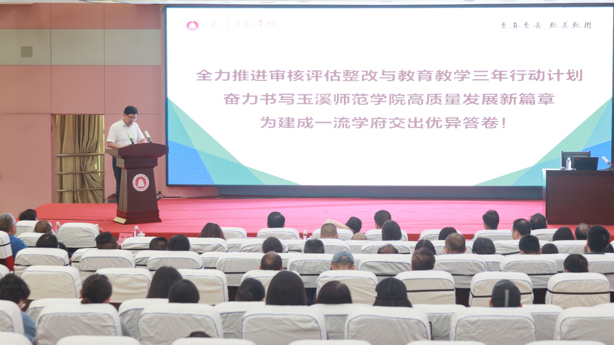 6月20日下午,玉溪师范学院2025年教学工作会在多元学术报告厅举行。学校党委书记姜家雄宣布有关表彰决定。学校党委委员、副校长章新代表学校作教学工作报告。学校党政领导、各二级学院负责人、教学骨干、专业负责人等齐聚一堂,共同谋划学校教学工作高质量发展新篇章。会议由教务处处长王晶晶主持。