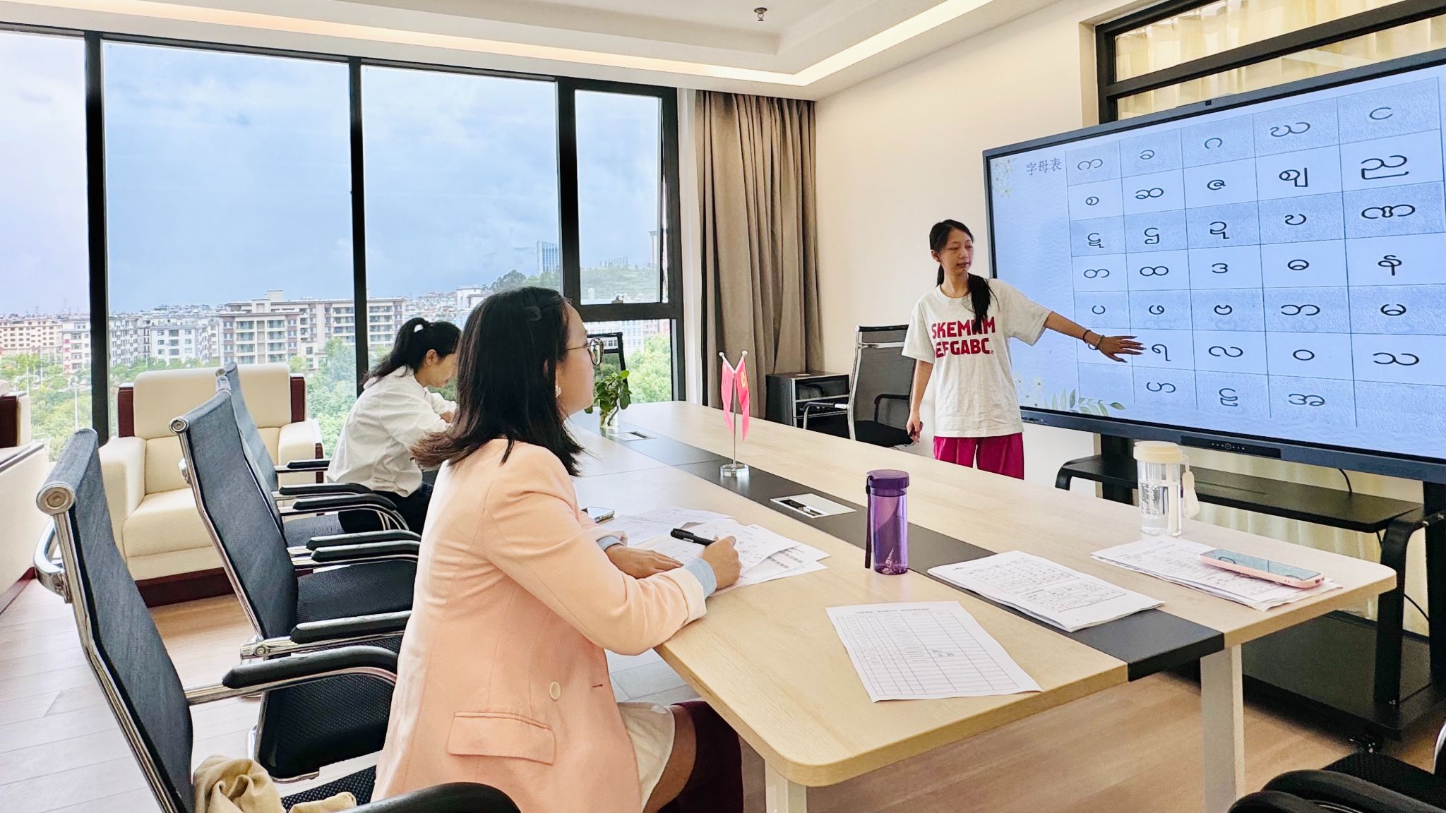 晨阳正好,红塔区党群服务中心内设置的一间间语言教室内,授课老师从口型到发音,由单词到词组,为学员们认真讲解外语知识,台下学员们聚精会神,反复跟读,徜徉在语言的海洋中。