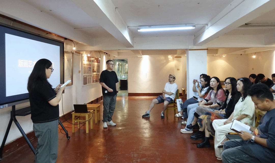 授课结束后,王飚教授带领学员深入参观了湄公河次区域民族民间文化传习,进一步就版画介入文创开发、美育实践等议题展开研讨,为学员创新实践及版画艺术的拓展提供了切实的理论指导和案例参考。