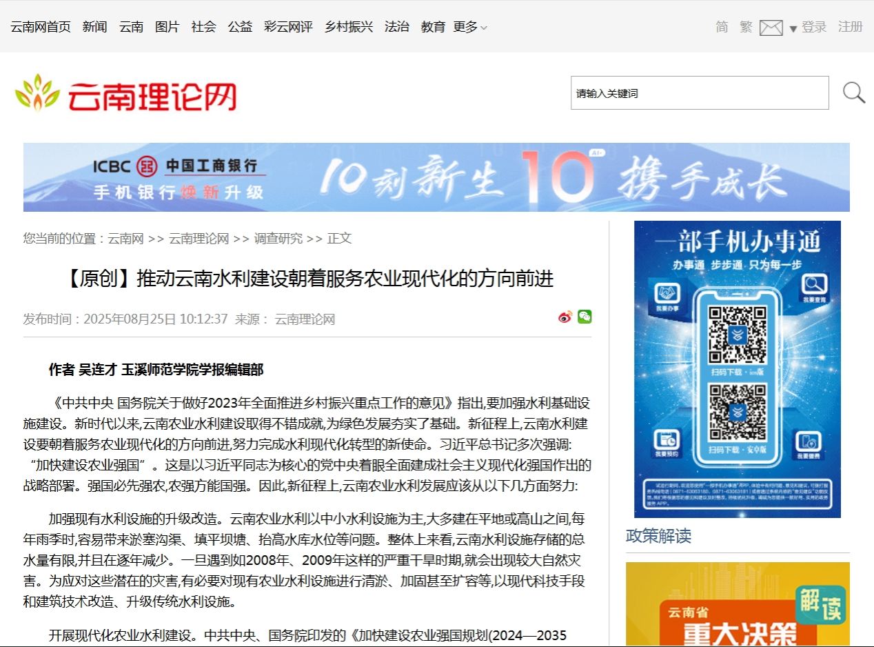 [本文系2025年云南省哲学社会科学规划智库项目“习近平治水思路的云南实践研究”(项目编号:ZK2025YB32)的研究成果]