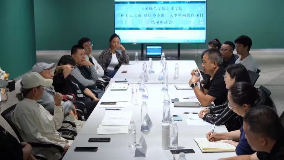 座谈会由美术学院院长赵芳主持。玉溪师范学院校长段红云、党委副书记杨光,中央美术学院教授、银龄教师孙景波,项目合作者、美术学院郭巍教授,以及科研处、美术学院党政领导和主创团队师生共同参会。