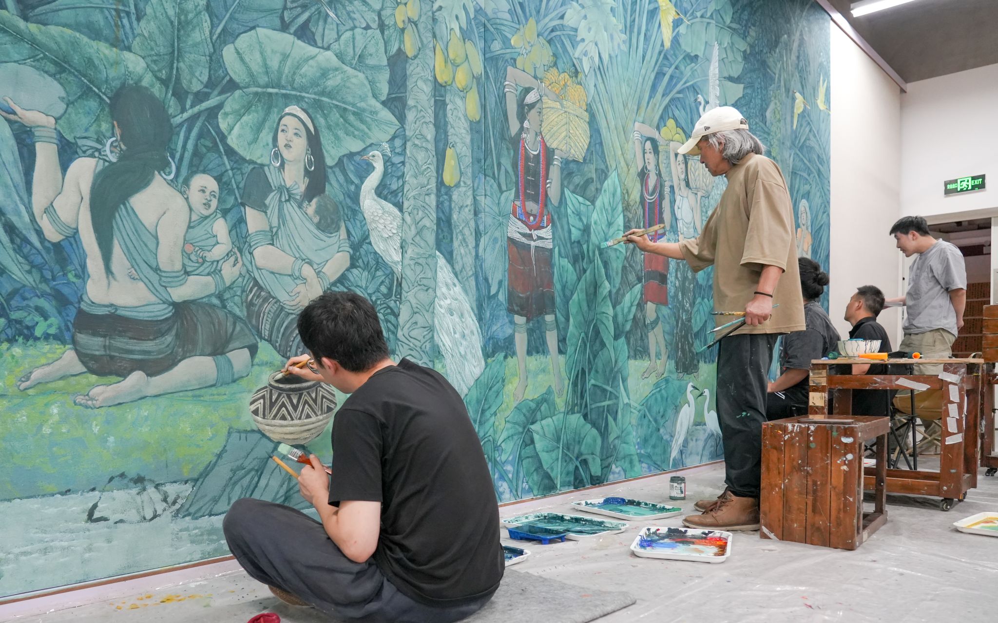 美术学院师生团队进行《和美云之南 绿色协奏曲》大型壁画创作。本报通讯员 朱贵谕 摄
