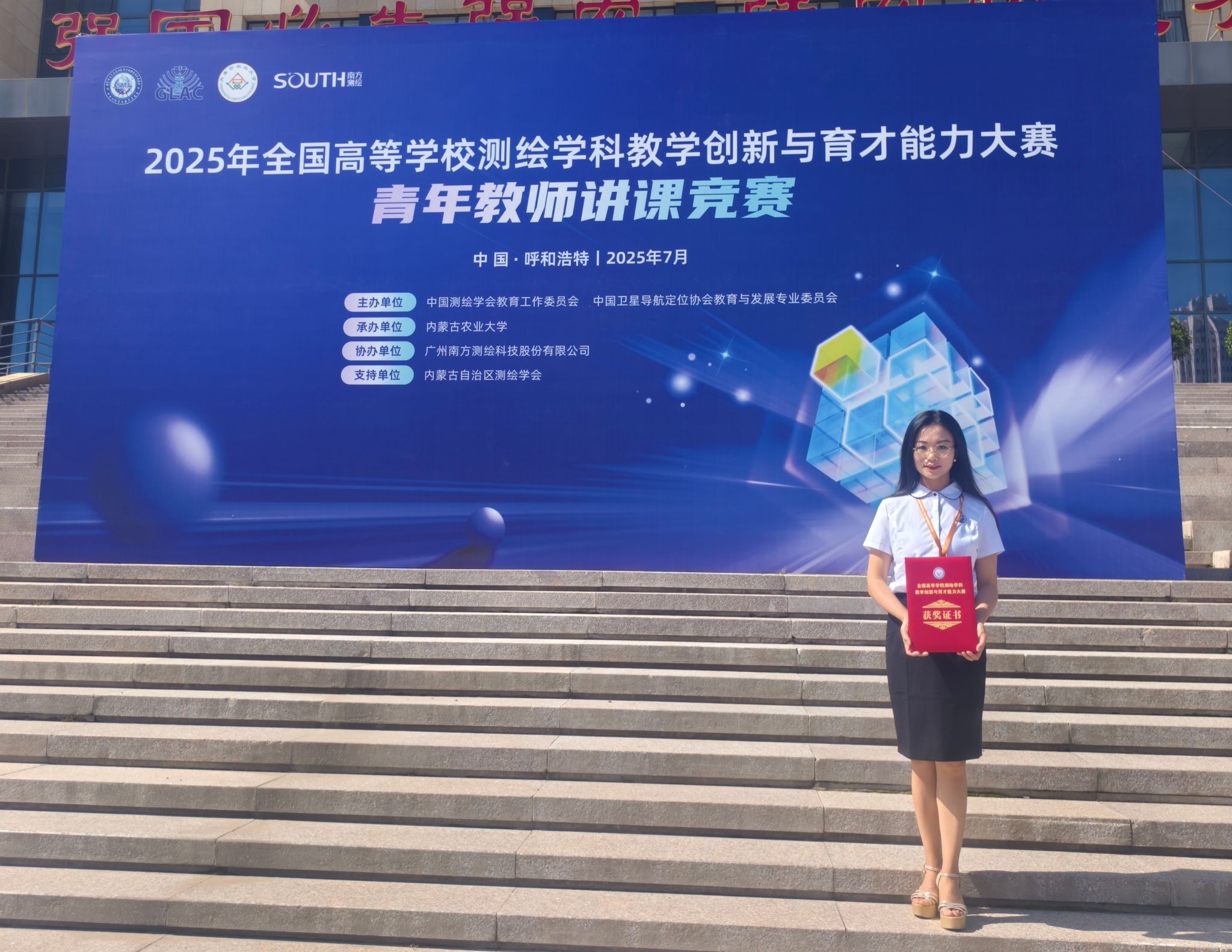 7月29日至30日,2025年全国高等学校测绘学科教学创新与育才能力大赛青年教师讲课竞赛决赛在内蒙古农业大学成功举办。玉溪师范学院地理与国土工程学院教师赵琳凭借扎实的专业功底、先进的教学理念与精湛的教学技艺进入决赛并获二等奖,展现了学校青年教师的风采与实力。