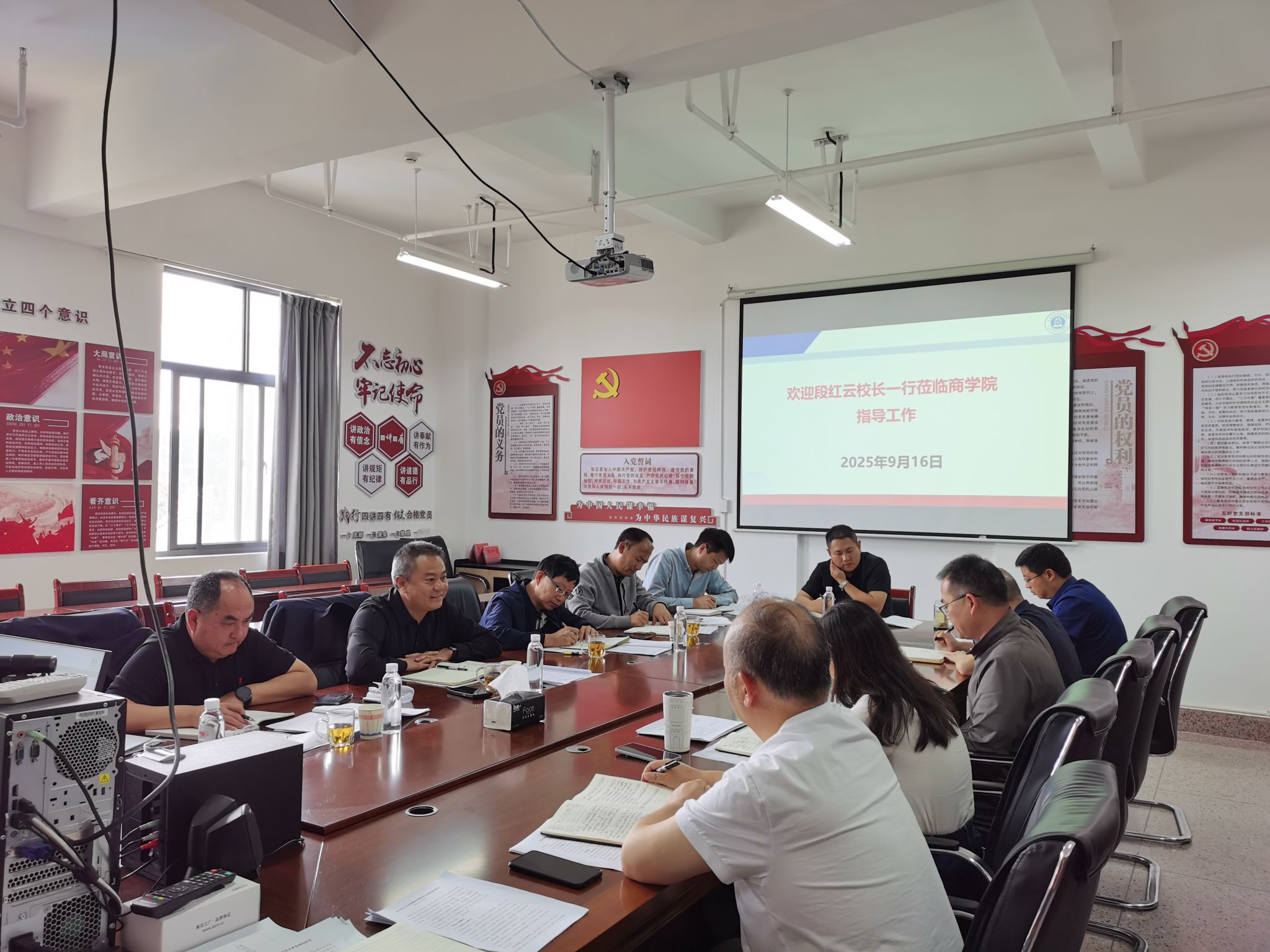 9月16日上午,玉溪师范学院校长段红云带队到商学院就学科专业、师资队伍建设及教育高质量发展三年行动计划落实情况开展专题调研。副校长章新、杨伟,人事处、教务处、科研处、学校办公室相关负责人参加调研。