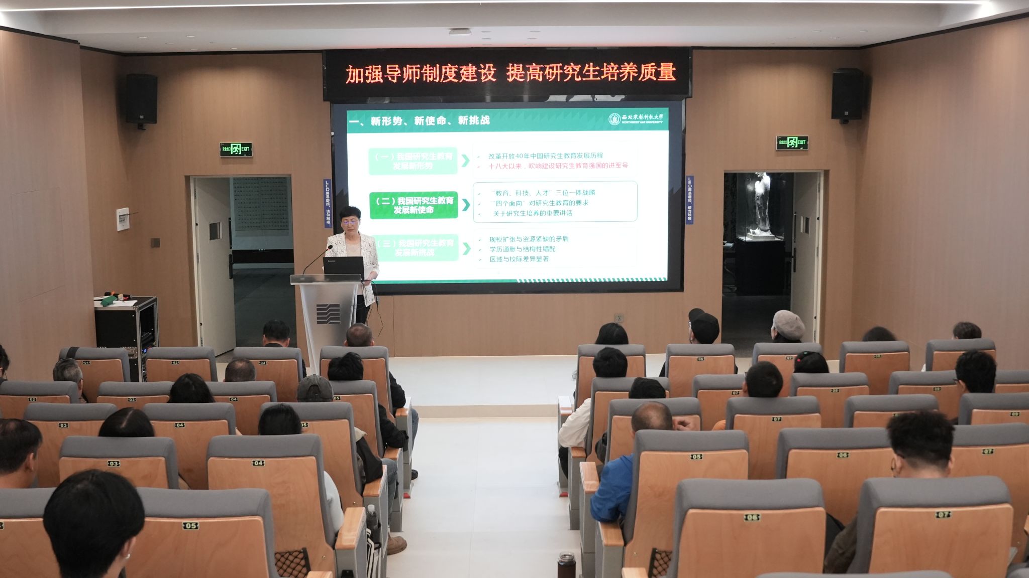 张静教授结合西北农林科技大学的实践探索,分享了该校在导师遴选、培训、考核、激励等方面的制度设计与实施成效,包括分层分类培训体系、导师持证上岗、优秀导师评选等机制。她还以该校的孙世坤教授为例,生动展示了一名优秀导师如何在科研引领、学生成长与职业发展等方面发挥关键作用,为参会者提供了可借鉴的育人经验。