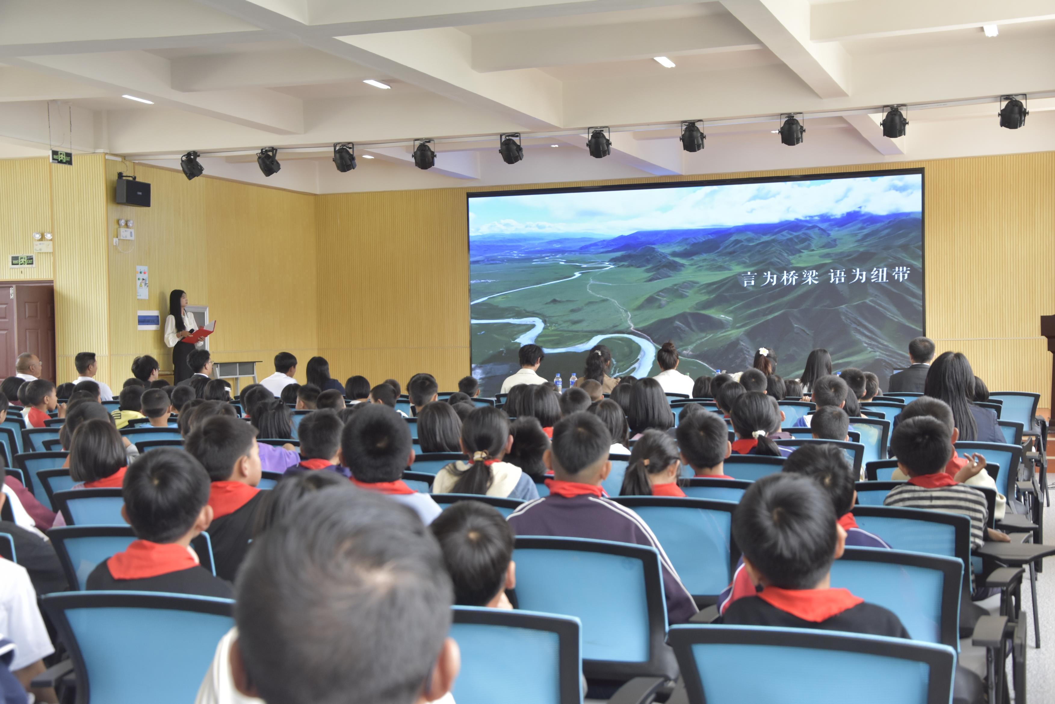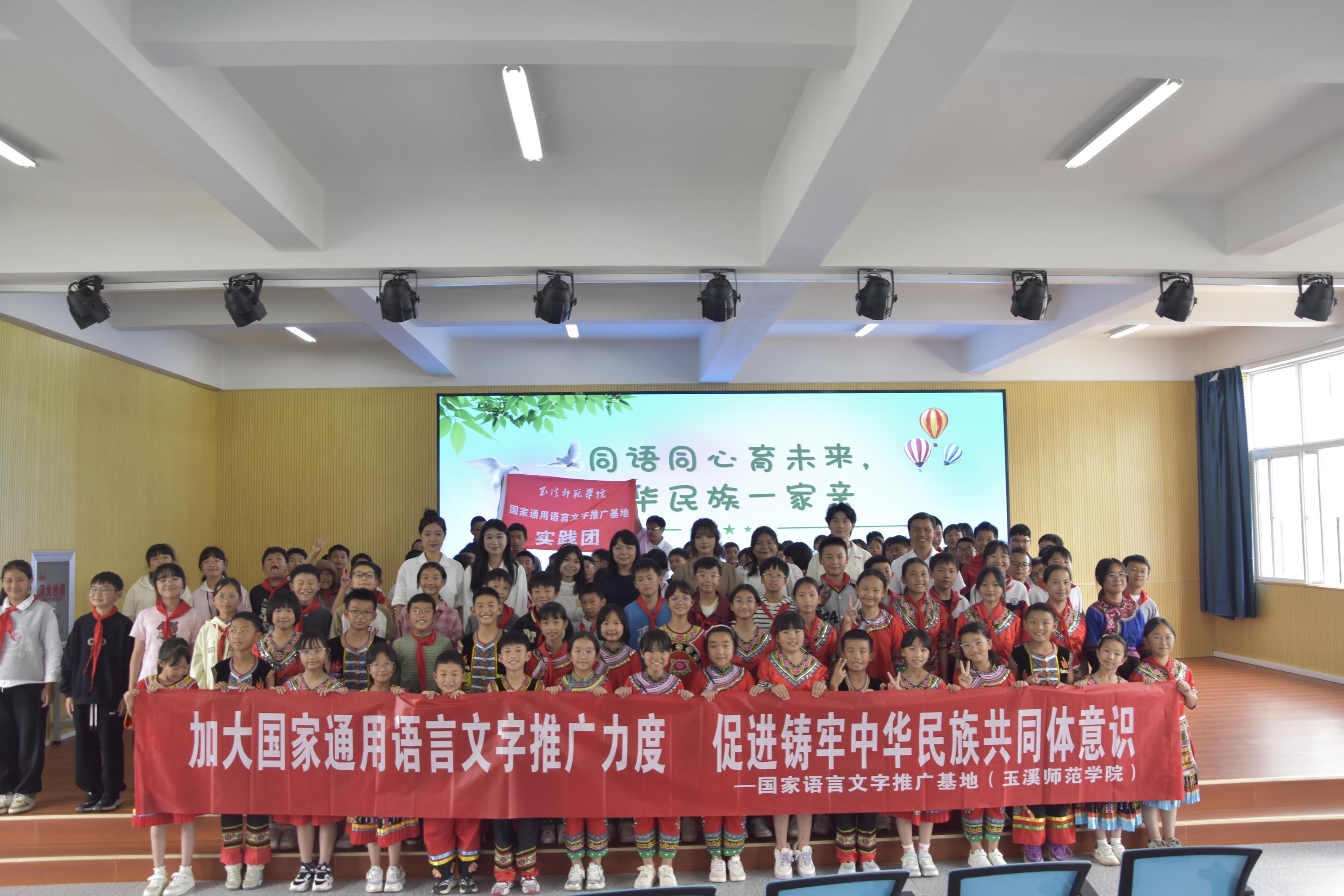 活动在该校礼堂举行,玉溪师范学院推普实践团师生及小石桥中心小学全体师生400人共同参与。整场活动以推广普及国家通用语言文字、铸牢中华民族共同体意识为主线,通过多元互动、情感共鸣的方式,将“书同文、语同音、人同心、脉同源”的理念传递至孩子们心中。