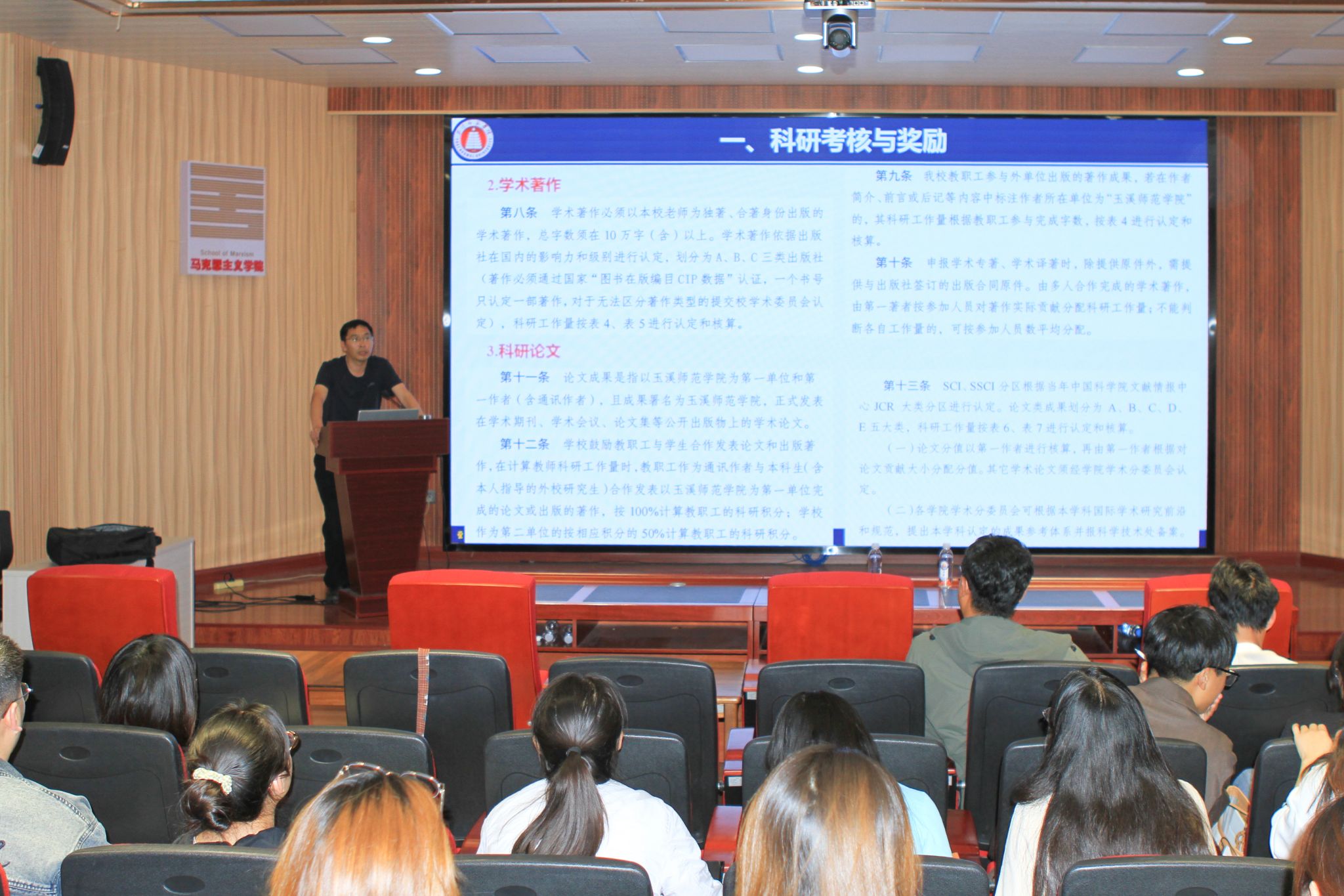 随后,科研处处长赵永胜聚焦学校科研政策,详细介绍了科研考核与奖励机制、科研诚信建设要求以及科研项目管理办法,帮助新教师全面了解科研环境,为今后开展学术研究奠定基础。