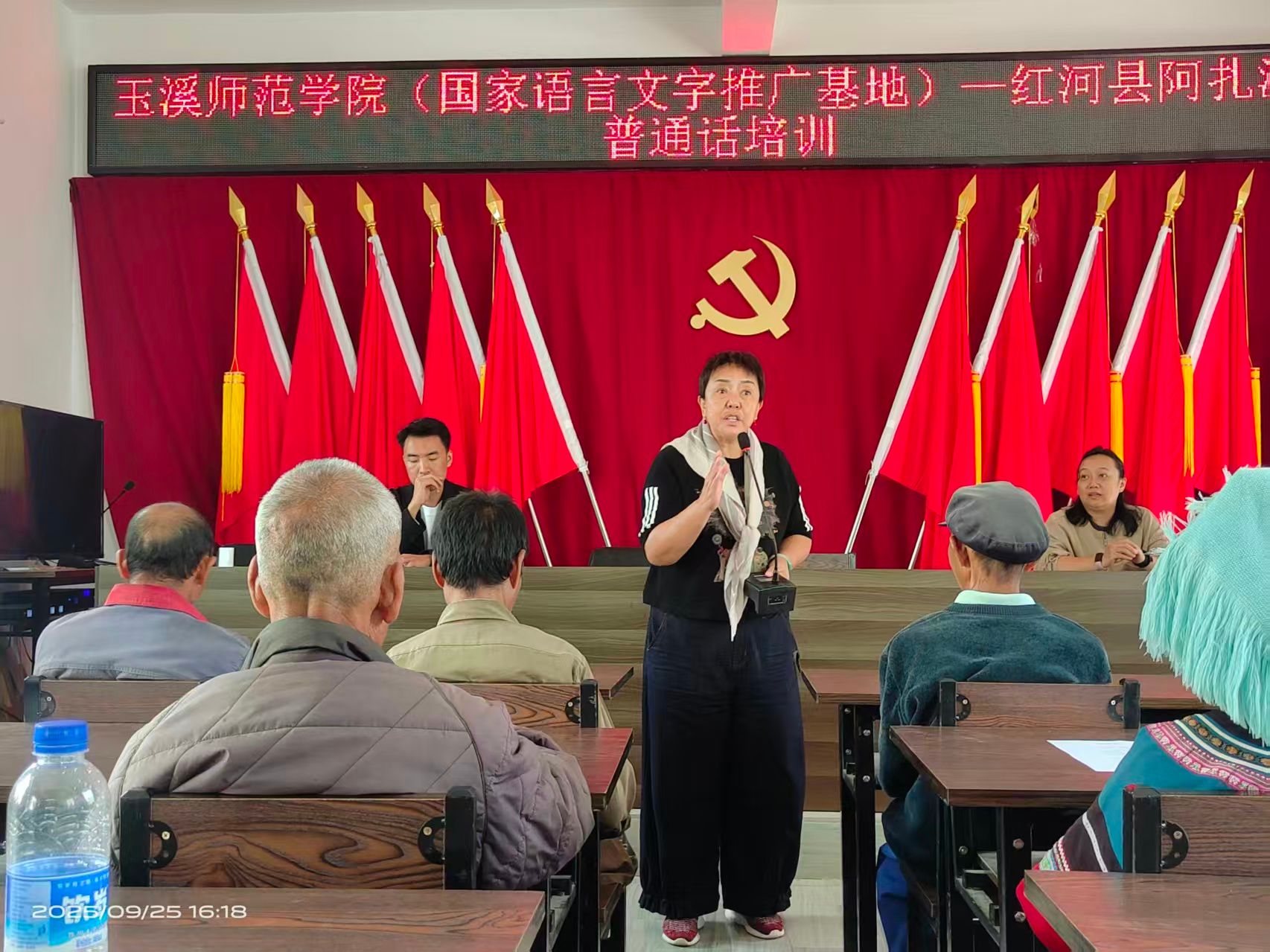 本次活动,团队深入红河县阿扎河乡、金平县马鹿塘小学、双金桥小学及元阳县阿者科村等地,面向各族干部群众、师生和文旅人员,以“寓教于乐、文化浸润”为特色,累计培训近千人。团队成员通过讲座、培训、快板、演唱等多元形式,将普通话教学与地方民俗文化、曲艺、音乐等内容深度融合,增强了培训的趣味性和参与度,提升了学员普通话应用能力,增强了大家对中华优秀语言文化的认同感。