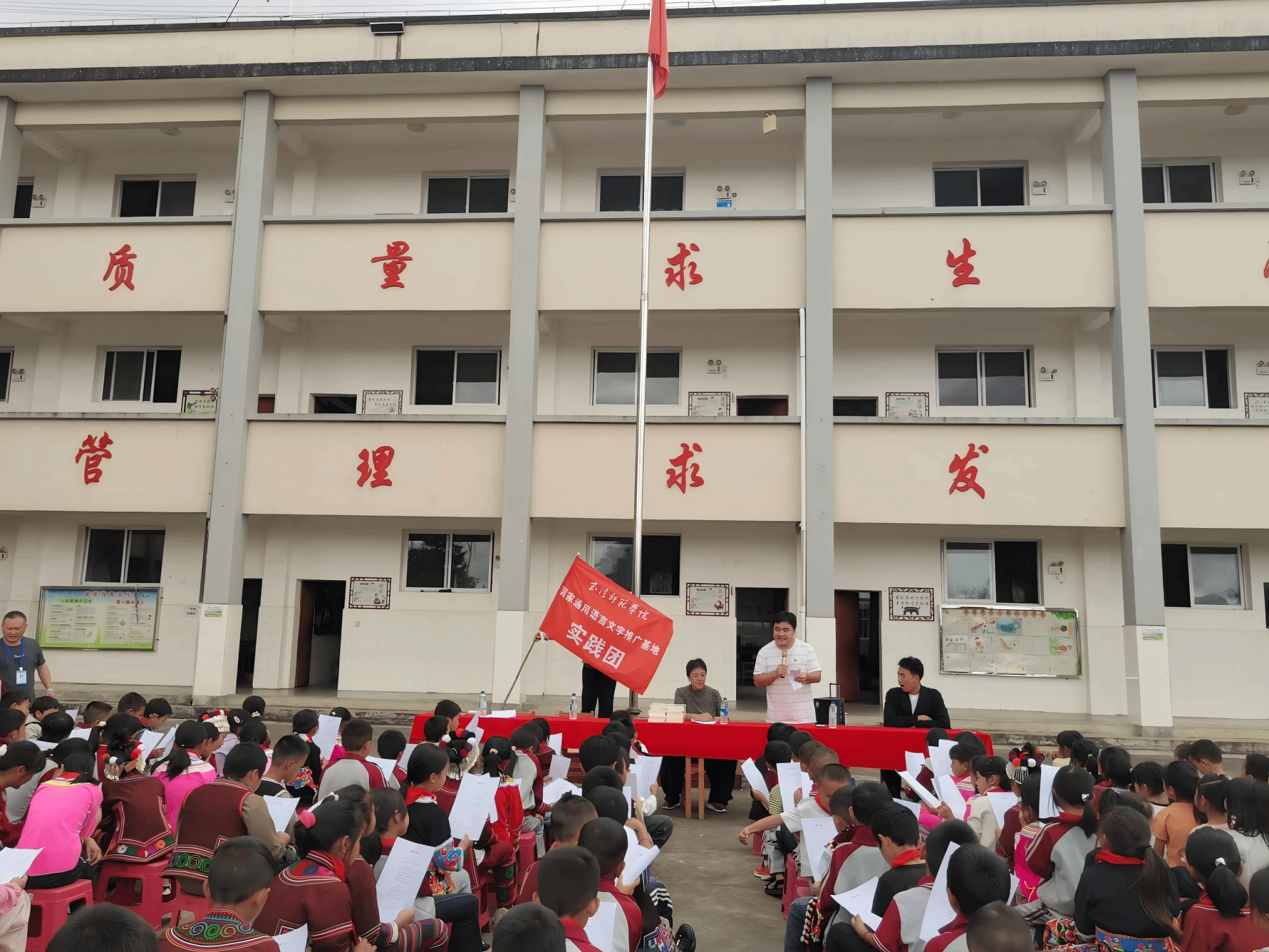 为贯彻落实国家通用语言文字普及提升工程及推普助力乡村振兴计划,助力铸牢中华民族共同体意识。近期,玉溪师范学院(国家语言文字推广基地)组织专家团队赴红河州开展国家通用语言文字推广培训系列活动。该活动由语委办主任曹冰雪带队,外国语学院党委副书记杨梅、化学与环境工程学院辅导员刘宪斌博士、音乐学院办公室主任李泽老师参加上述活动。