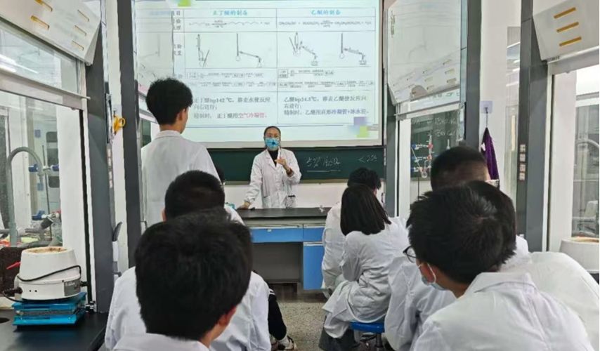 活动聚焦高考有机化学实验高频考点“正丁醚的制备”,该实验因涉及复杂反应控制与分离提纯技术,在高中实验室条件下难以开展。化学与环境工程学院主动对接基础教育需求,依托有机化学实验省级一流课程资源,将高校实验室转化为高中教学实践平台,破解高中实验教学瓶颈。针对高考考点设计“理论讲解-动手操作-拓展探究”三阶教学方案,将试题中的抽象实验转化为可操作的沉浸式教学项目。