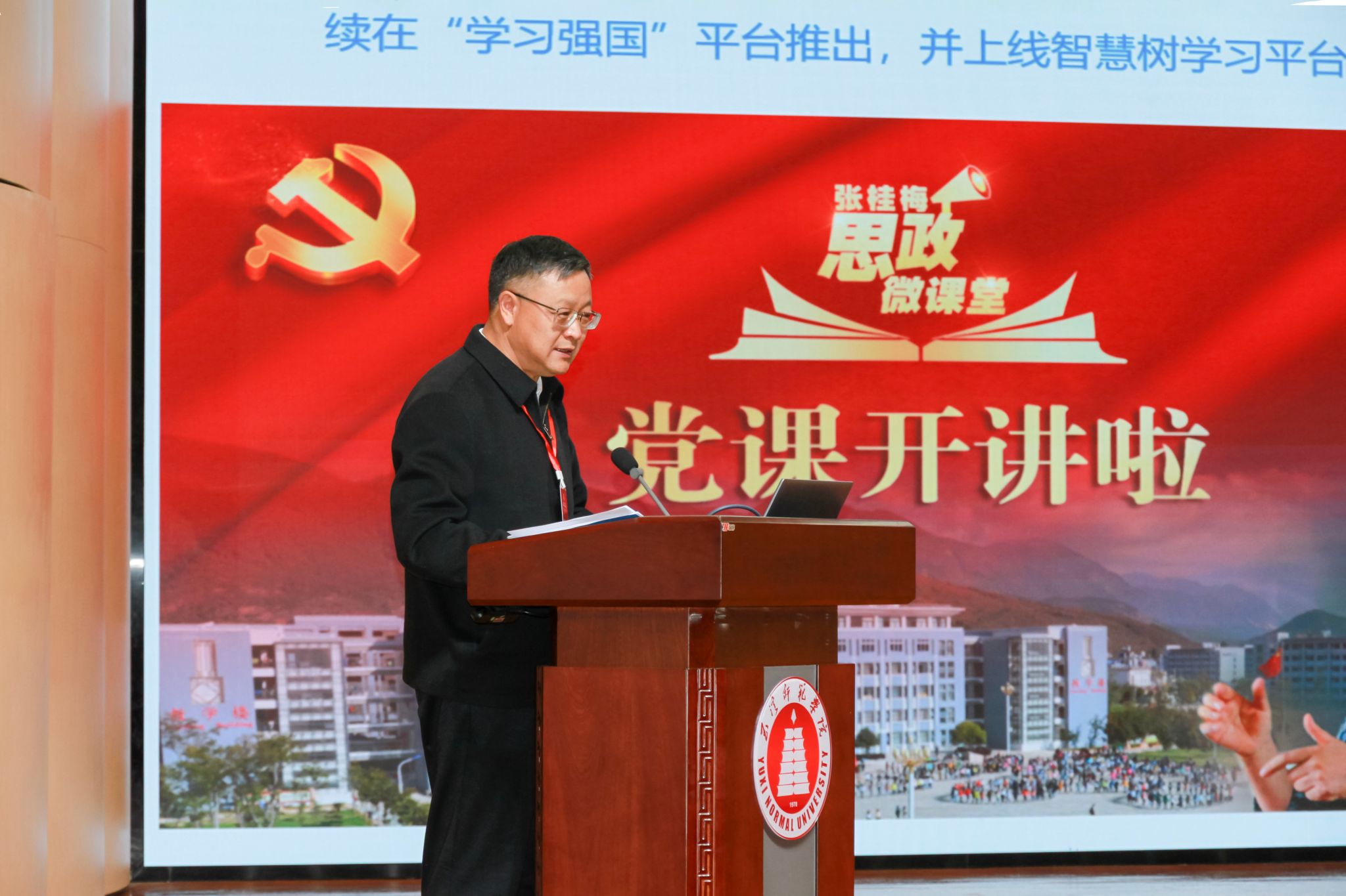 云南师范大学校长胡金明、文山学院校长谷雨、曲靖师范学院党委书记王贵义、普洱学院党委书记胡国云、丽江师范学院党委书记毕天云、楚雄师范学院党委副书记施红星依次以《云南边境县中学教师队伍高质量发展的思考》《产教融合 服务需求 边疆应用型高校高质量发展的经验探索与实践》《“扎根”边疆,数智“赋能”:培养师范类人才与服务区域发展“共生”模式探索》《深入学习贯彻习近平总书记给普洱民族团结誓词碑盟誓代表后代重要回信精神 助力云南民族团结进步示范区建设》《弘扬高尚师德 打造育人品牌——丽江师范学院“张桂梅师德教育体系”建设的探索与实践》《楚雄师范学院“三维一体”教师教育高质量发展模式的探索与实践》为题作主旨发言,分享各校在党建思政、队伍建设、服务地方及教师教育领域的创新实践与思考。