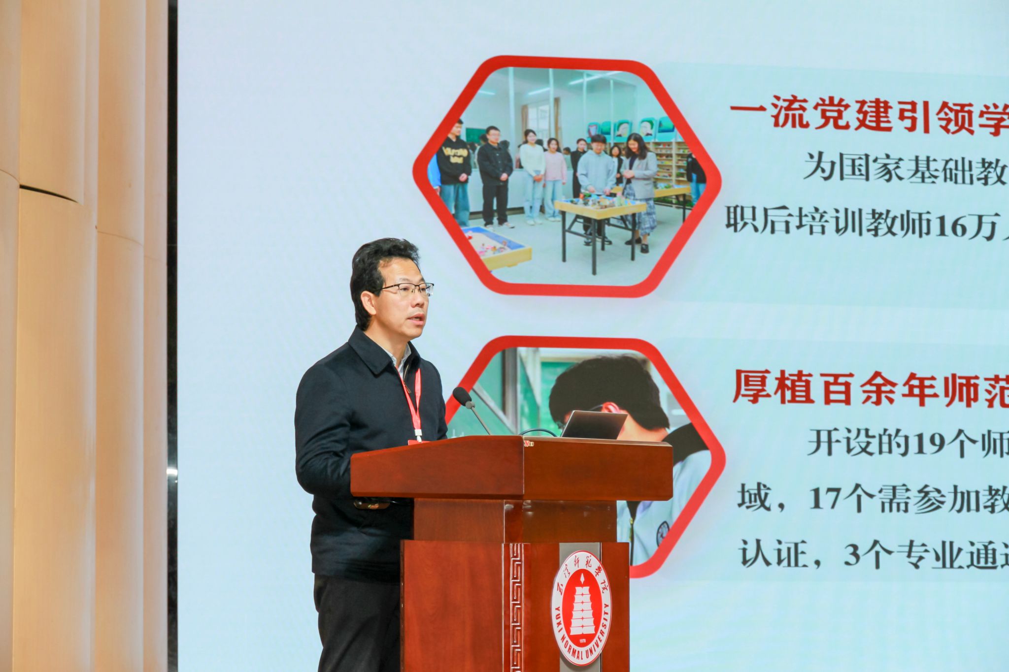 姜家雄介绍了玉溪师范学院党建思政、人才培养、科学研究、服务地方等方面工作情况,向长期关心支持学校建设发展的领导、嘉宾和同仁表示欢迎和感谢。姜家雄表示,学校终坚守师范传统,不断擦亮师范教育底色,紧跟新师范建设新形势,不断深化综合改革,打造教师教育的“玉师模式”,致力培养服务边疆基础教育的“四有好老师”。当前,数智技术正深刻重塑教育领域,为教师教育带来机遇与挑战,需要联盟成员单位携手突破壁垒、共享资源、协同创新。期待大家以真知灼见为云南教师教育事业把脉定向,为玉溪师范学院传经送宝。玉溪师范学院作为联盟成员,将以此次会议为契机,充分学习借鉴兄弟院校先进经验,聚焦数智驱动与育人革新,全面深化教育教学改革,探索教师教育高质量发展的“玉师范式”,为云南基础教育和区域经济社会发展贡献更大力量。