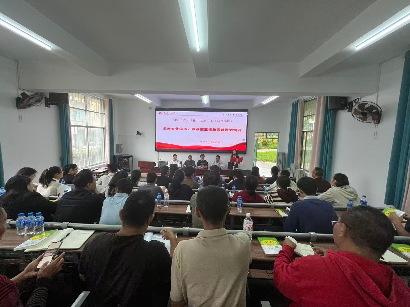 为深入落实国家语言文字推广普及工程,助力铸牢中华民族共同体意识,近日玉溪师范学院(国家语言文字推广基地)组织专家团队赴普洱市江城县开展国家通用语言文字推广培训活动。本次活动由语委办主任曹冰雪带队,文学院退休教师、国家级普通话测试员金国东,省级普通话测试员、音乐学院博士路远等老师参与,通过专题培训、活动推广、教材捐赠等形式,为边境地区语言文字规范化建设注入新动能。
