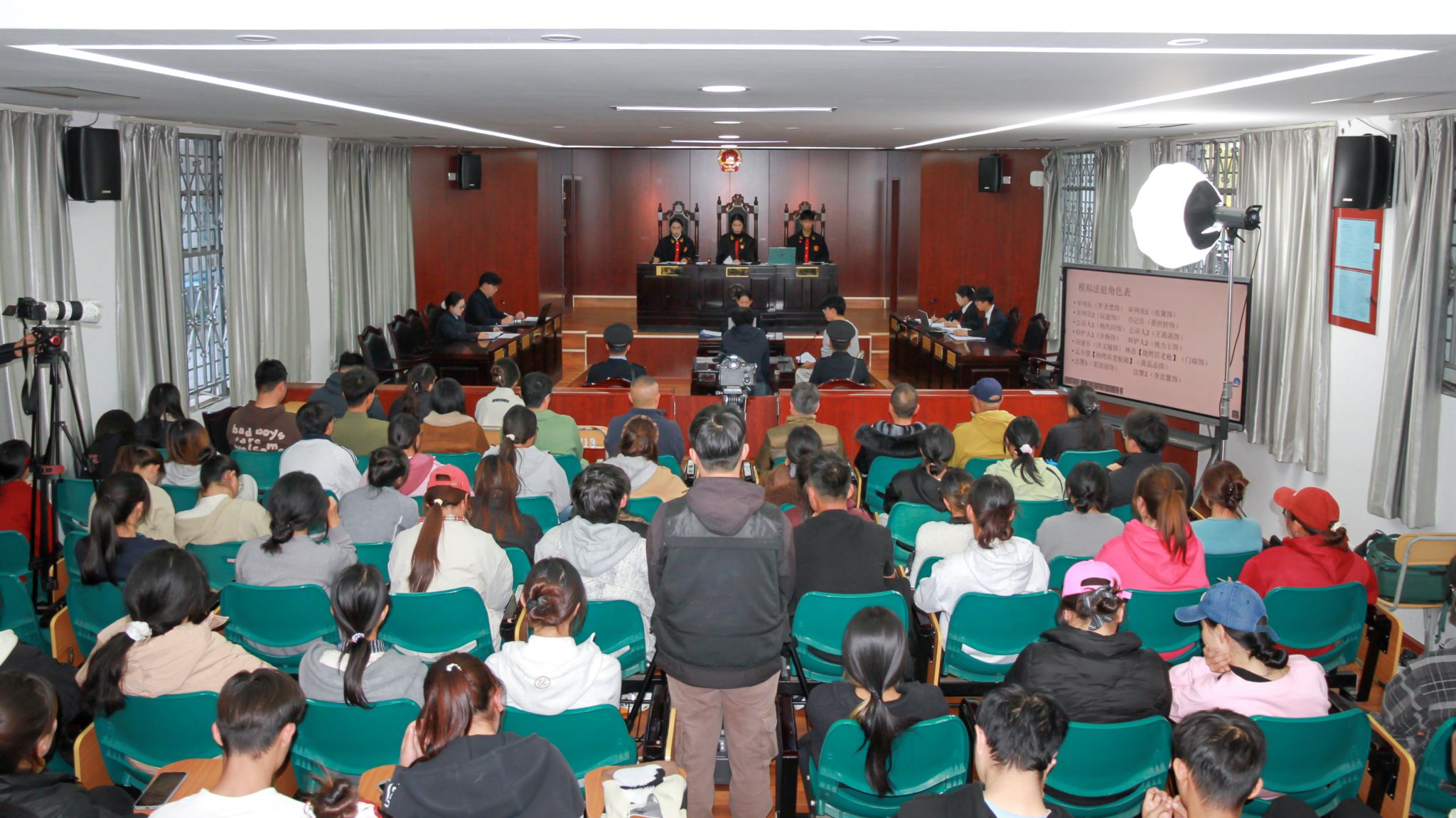 该活动由玉溪师范学院党委宣传部、法学院联合主办,教师李海霞指导,法学专业、航空服务与管理专业学生担任审判人员、公诉人、辩护人、被告人及证人等角色。法学院党政领导,玉溪职业技术学院教师、玉溪师范学院各学院学生现场观摩。
