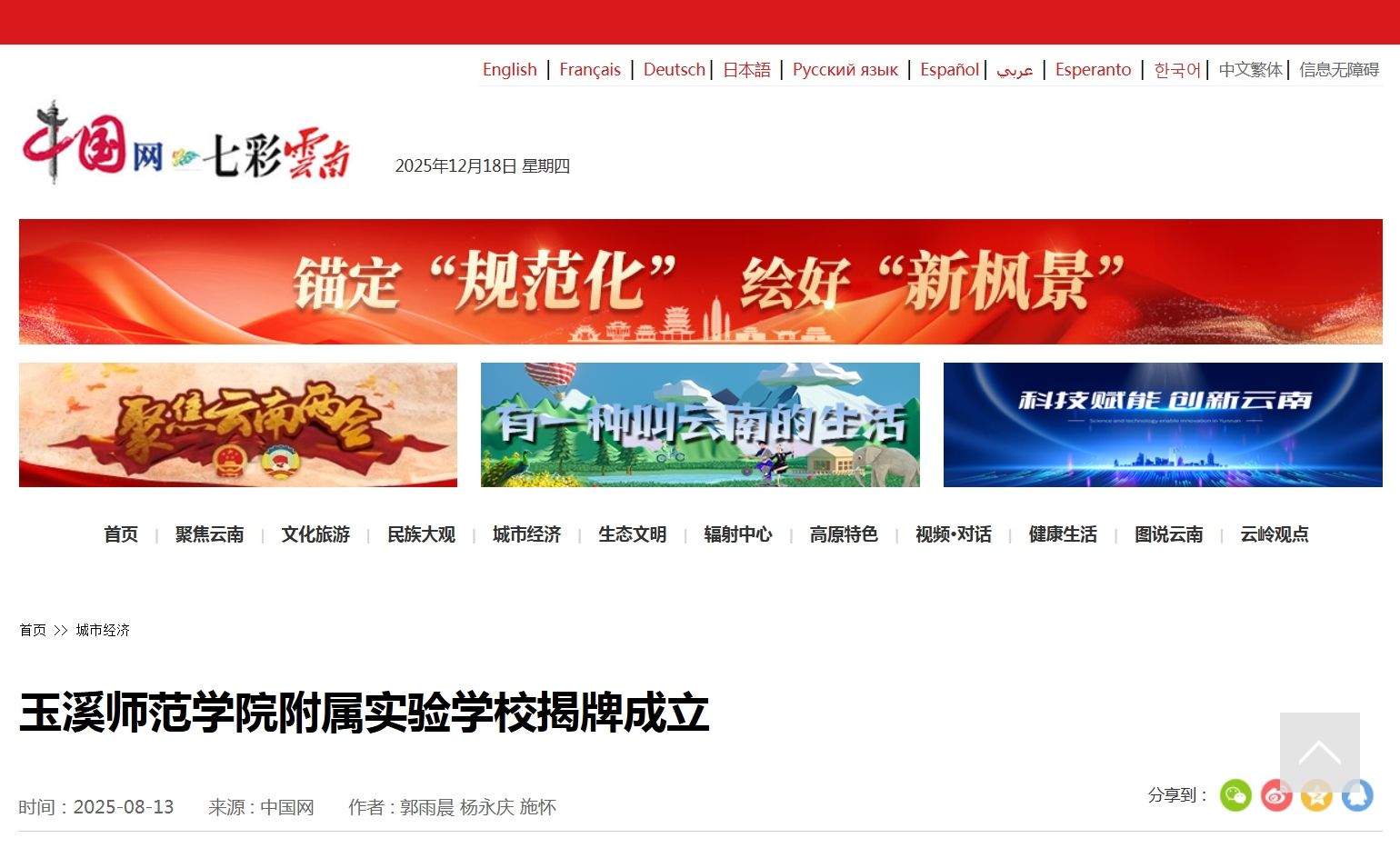 玉溪师范学院党委副书记、院长段红云,市委常委、区委书记张名,副市长陈静参加签约仪式并为玉溪师范学院附属实验学校揭牌。