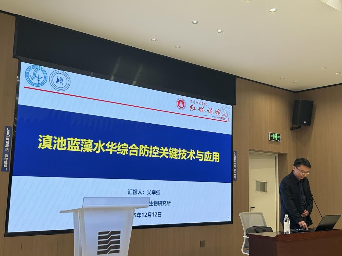 吴幸强研究员以《滇池蓝藻水华综合防控关键技术与应用》为题,围绕滇池生态保护核心议题,深入剖析滇池藻华发生特征及藻类群落演替规律,揭秘蓝藻优势种群维持的关键生态机制,解析蓝藻水华垂直迁移的环境驱动因素,分享基于多源数据的蓝藻水华预测预警技术体系,详解应急处置中的物理、化学与生物协同调控技术,提出长效防控方案。讲座内容翔实、数据严谨,既有前沿理论支撑,又有丰富实践案例,为在场听众呈现了蓝藻水华防控领域的技术全景。